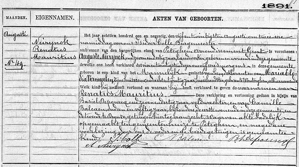 Geboorteakte te Petegem-aan-de-Leie, OV, BE (Bron [358])