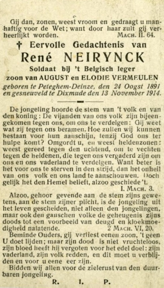 Bidprent voor de slachtoffers van W.O. I in Nazareth, OV, BE (Bron