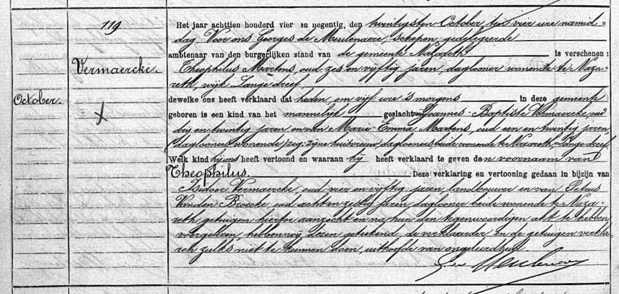Geboorteakte te Nazareth, OV, BE (Bron [358])
