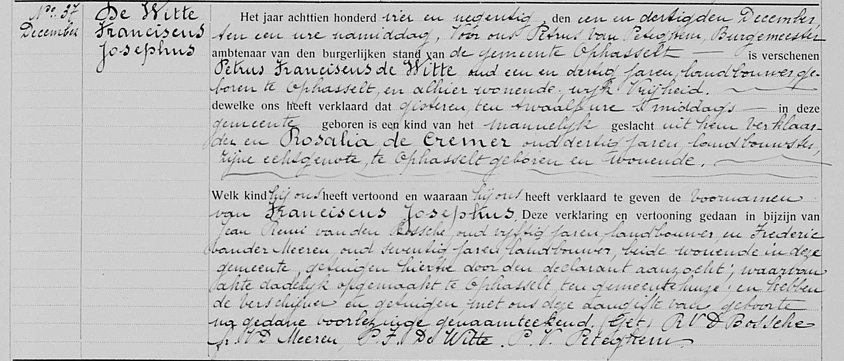 Geboorteakte te Ophasselt, OV, BE (Bron [358])