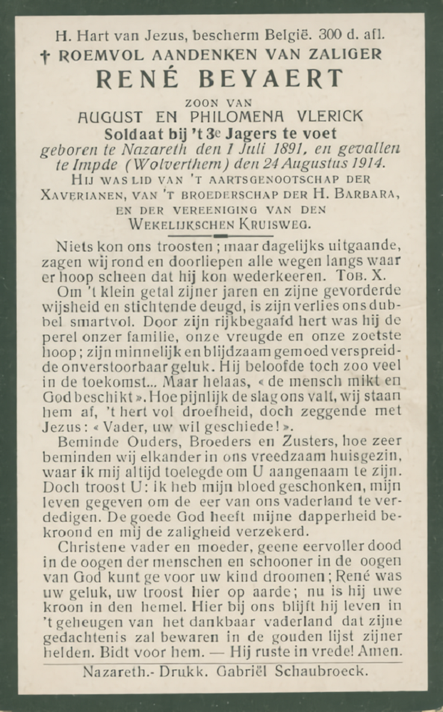 Bidprent voor de slachtoffers van W.O. I in Nazareth, OV, BE (Bron