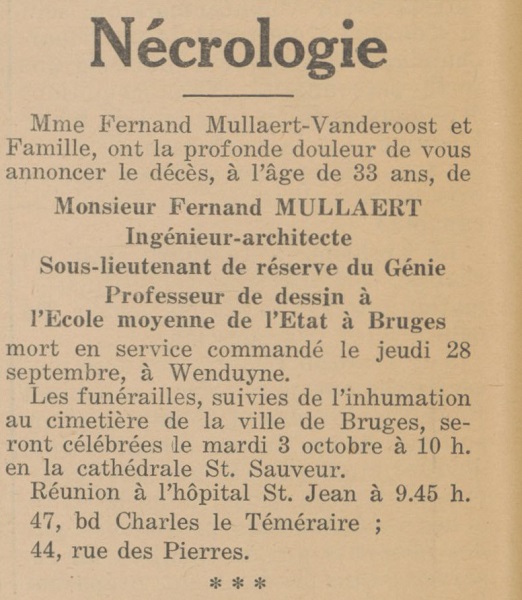 waar het lichaam van Fernand MULLAERT lag opgebaard (Bron [188])