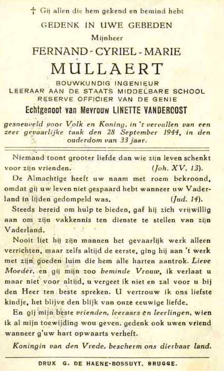 Uitvaartplechtigheid voor Fernand MULLAERT.