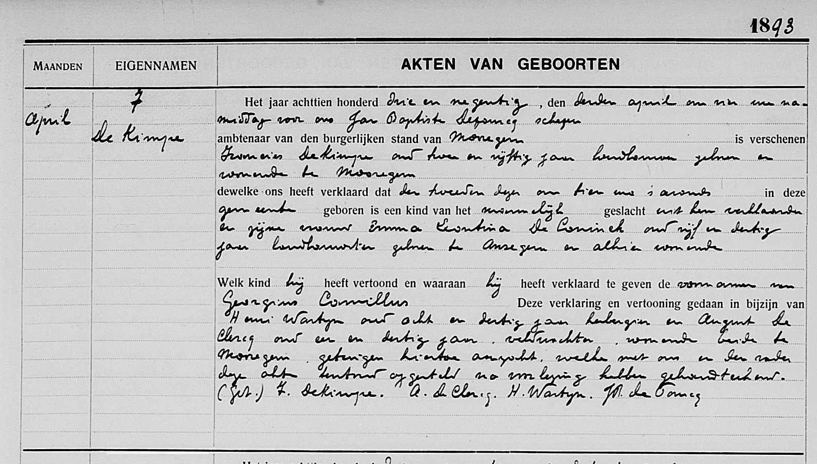 Geboorteakte te Moregem, OV, BE (Bron [358]) (Het beeld downloaden