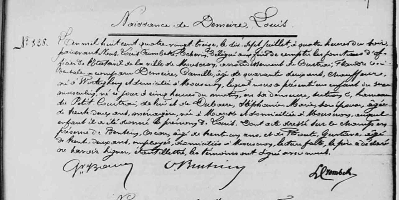 Acte de naissance à Mouscron, HT, BR (Source [358])
