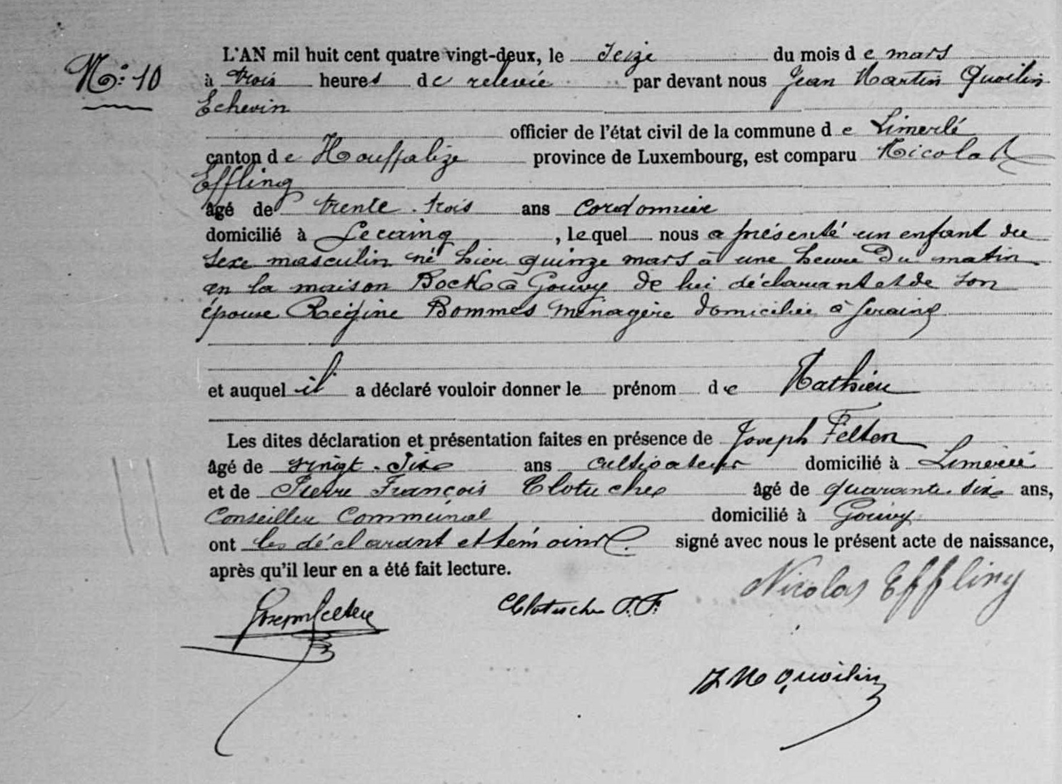Acte de naissance à Gouvy, LU, BE (Source [358])