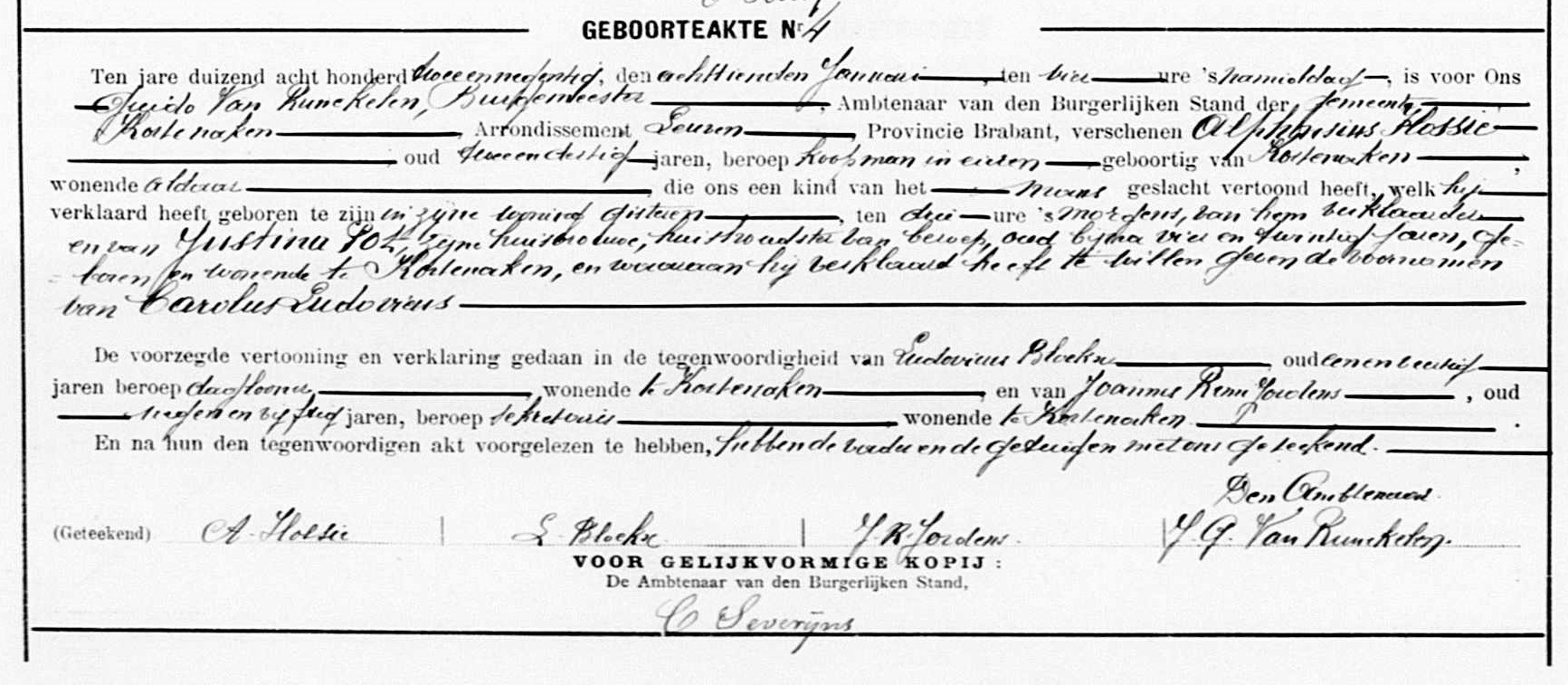 Geboorteakte te Kortenaken, VB, BE (Bron [358]) (Het beeld