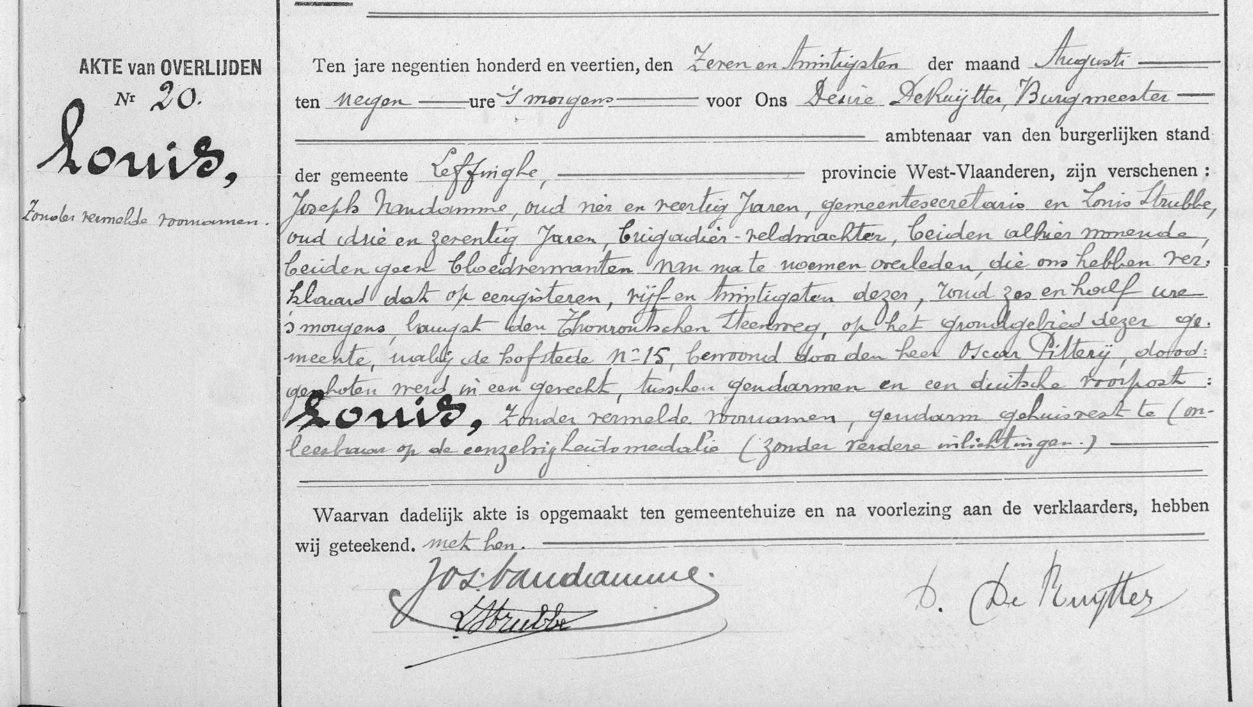 Acte de décès à Leffinge, WV, BE (Source [358])