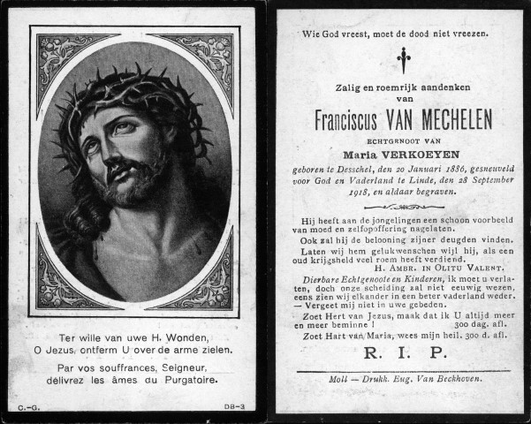 Memento voor de gesneuvelden van W.O. I van Dessel, AN, BE Bron