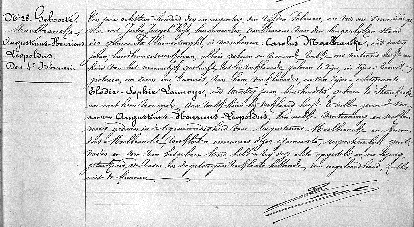 Geboorteakte te Vlamertinge, WV, BE (Bron [358])