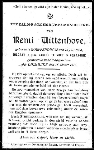 Bidprent voor de slachtoffers van W.O. I van Goeferdinge, OV, BE