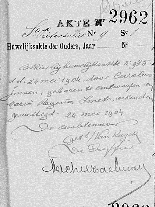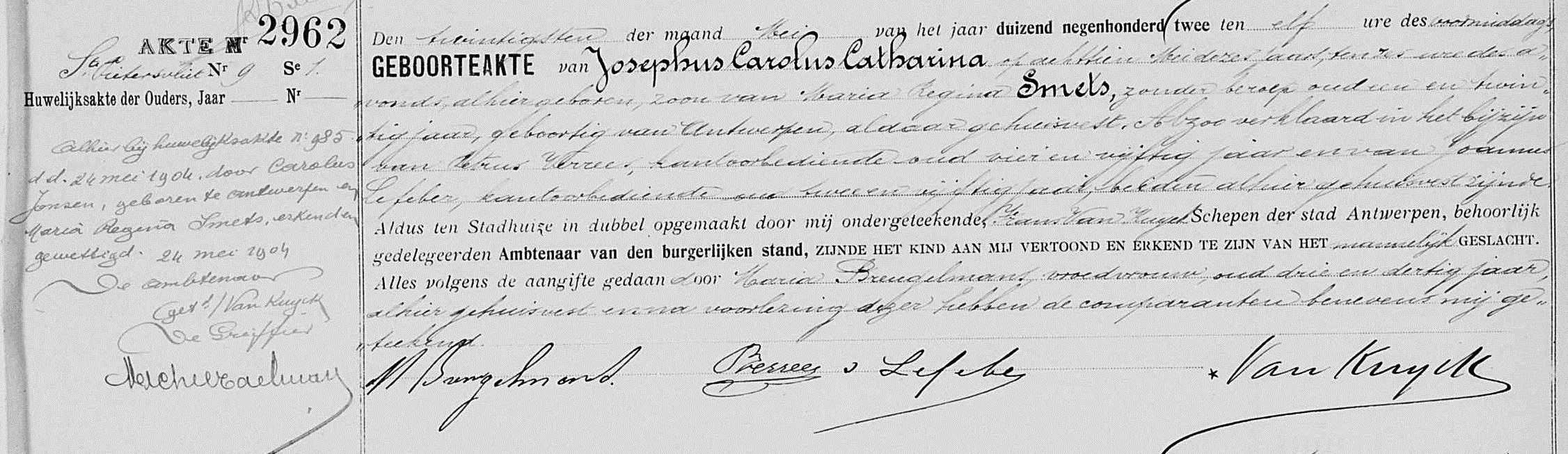 Geboorteakte te Antwerpen (Anvers), AN, BE (Bron [358])