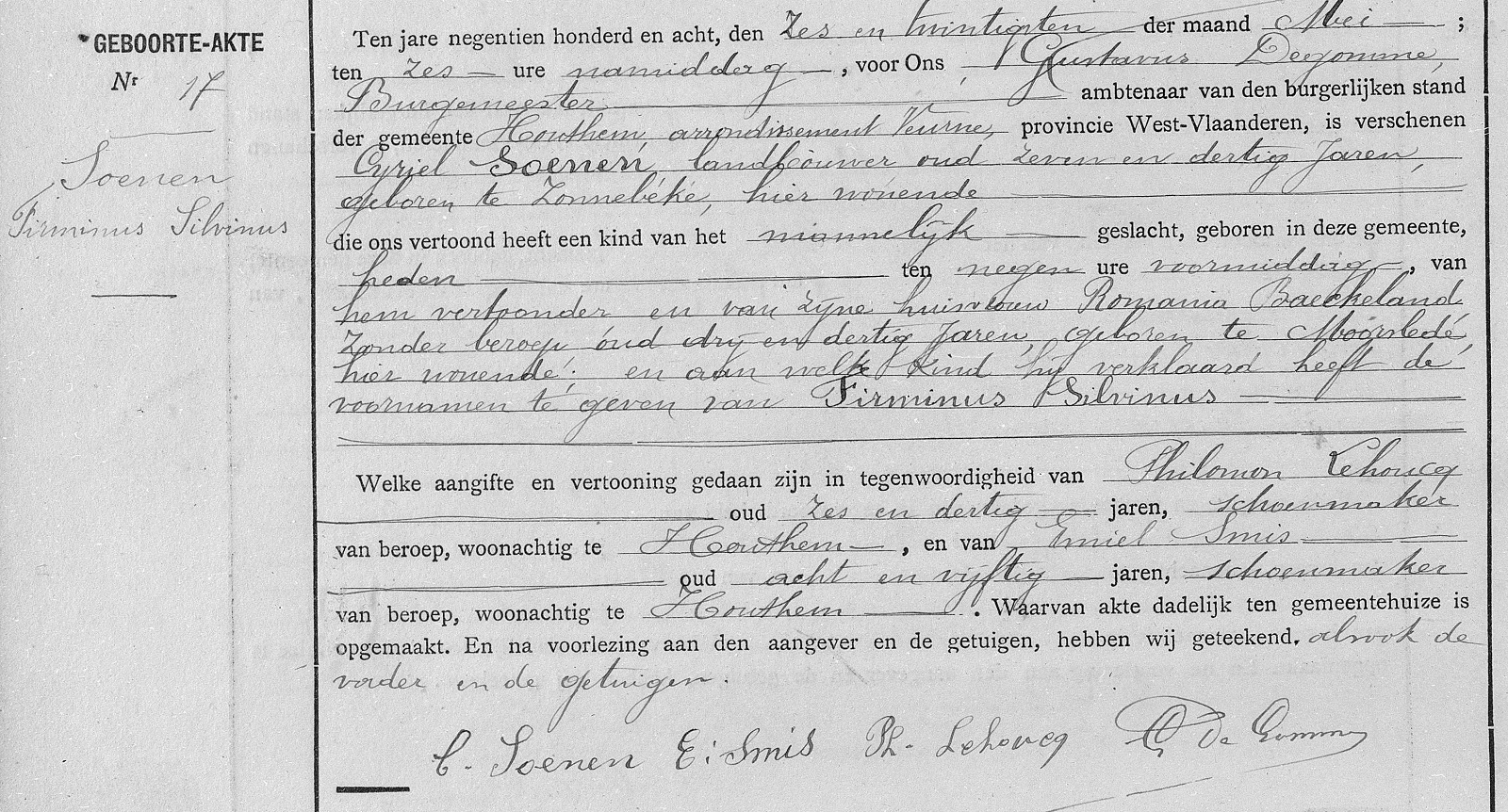 Geboorteakte te Houtem, WV, BE (Bron [358])