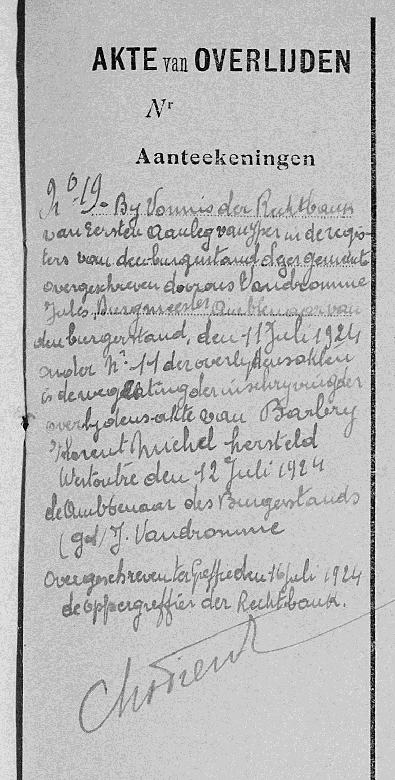 Vonnis houdende verklaring van overlijden - Burgerlijke stand van