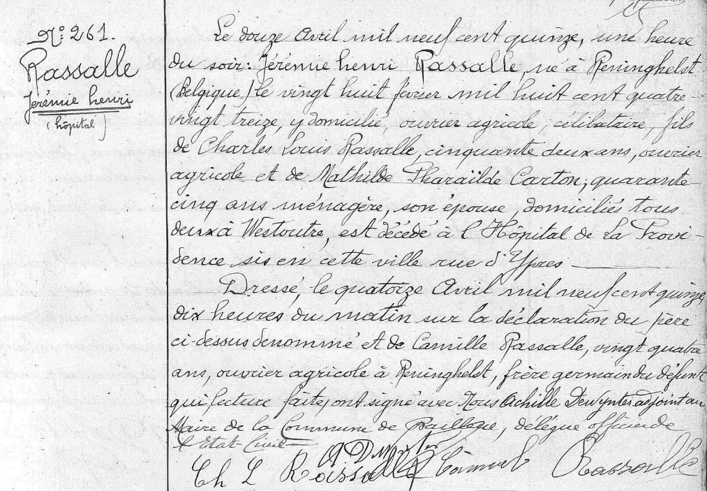 Overlijdensakte te Bailleul (Belle), Nord, FR (Bron: Archives