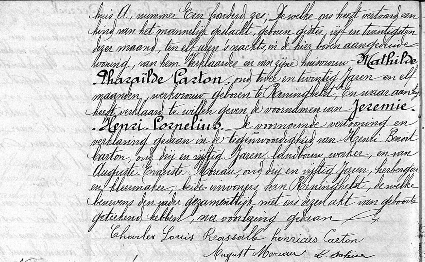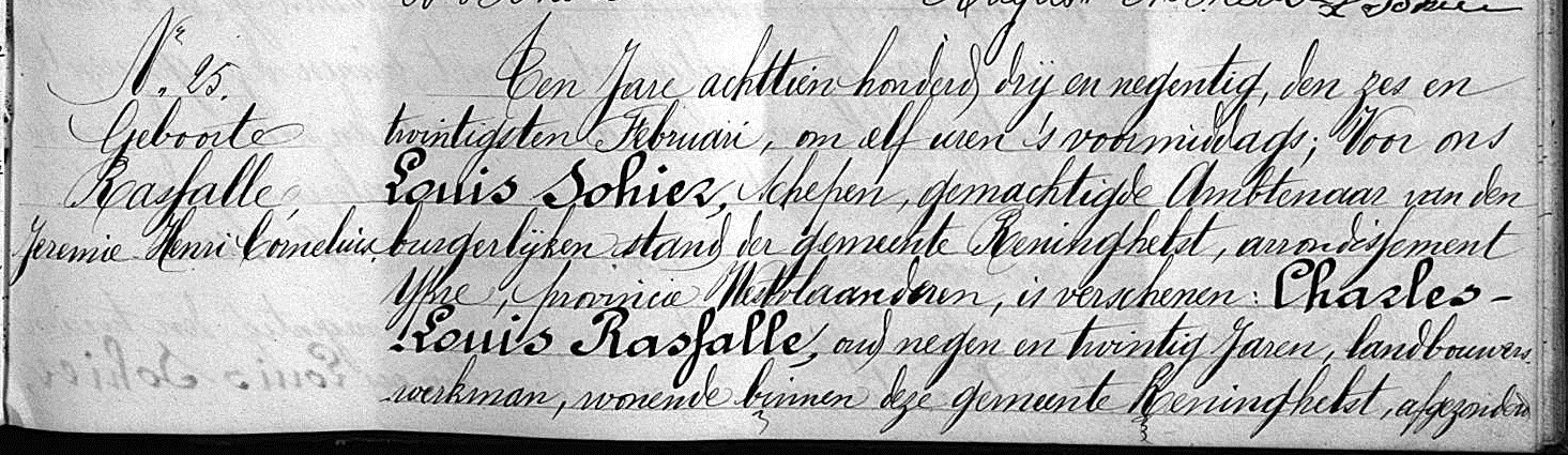 Geboorteakte te Reningelst, WV, BE (Bron [358])