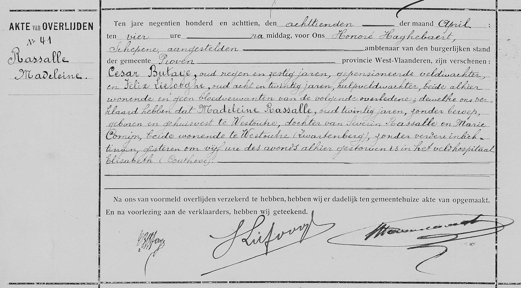 Overlijdensakte te Proven, WV, BE (Bron [358]