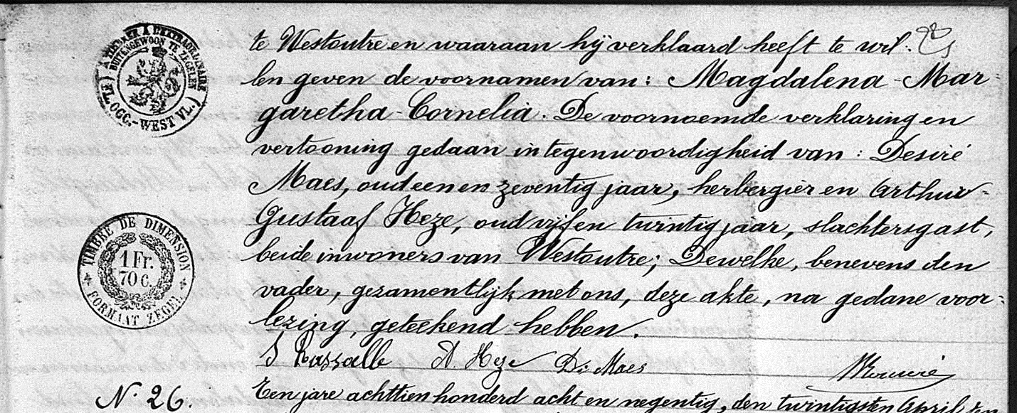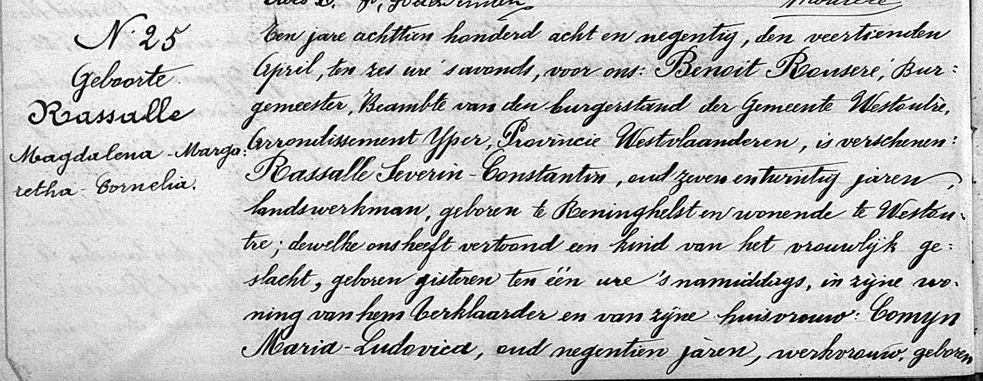 Geboorteakte te Westouter, WV, BE (Bron [358])