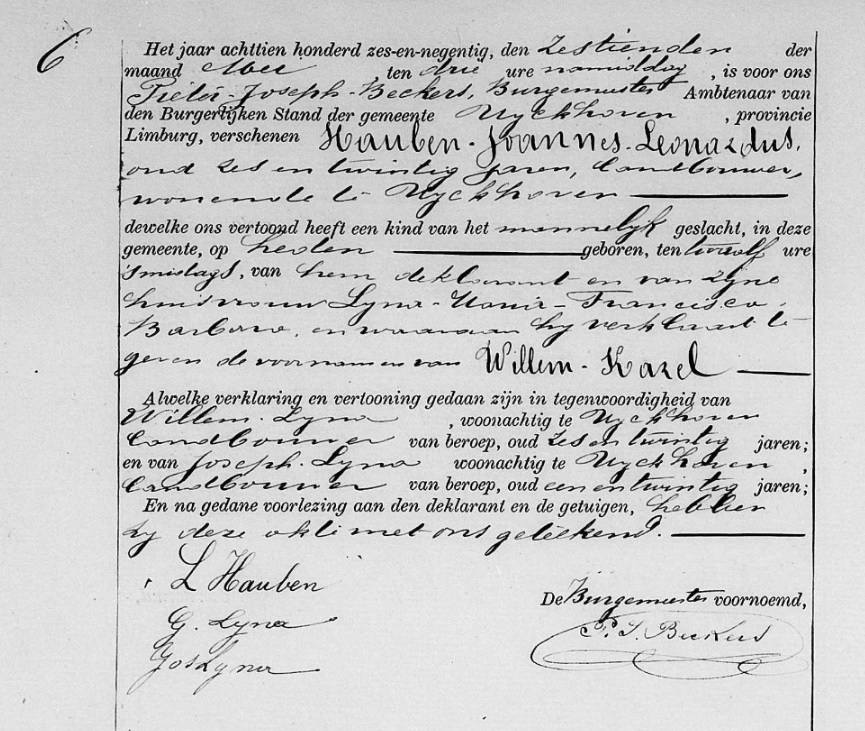 Geboorteakte te Uikhoven, LI, BE (Bron [358])
