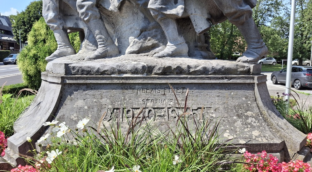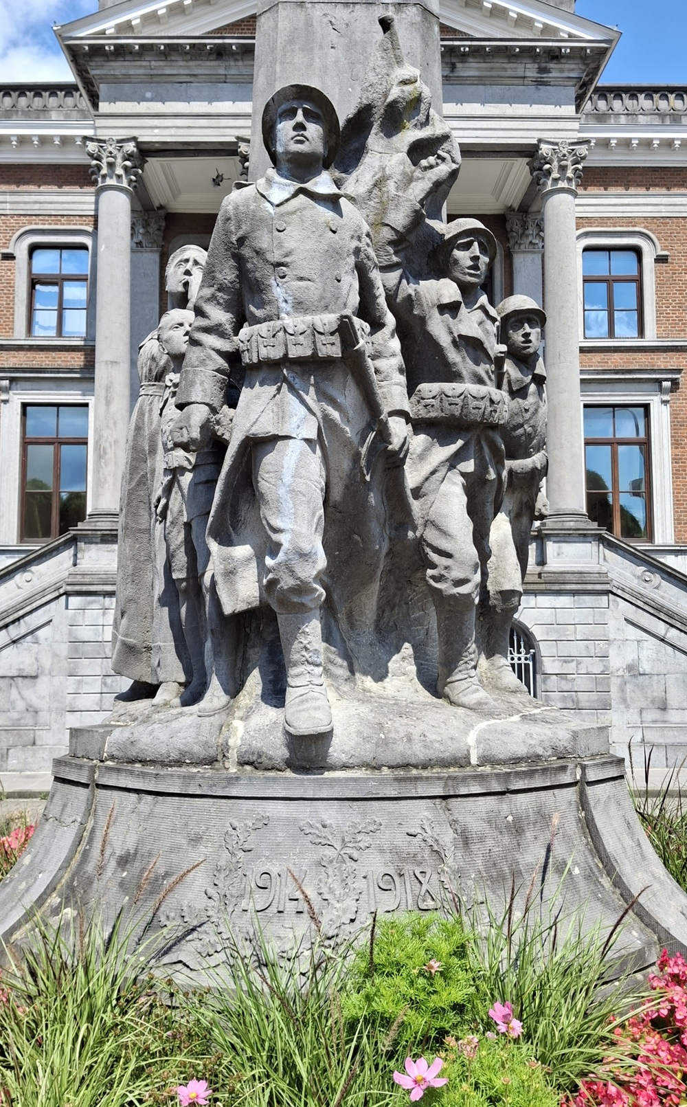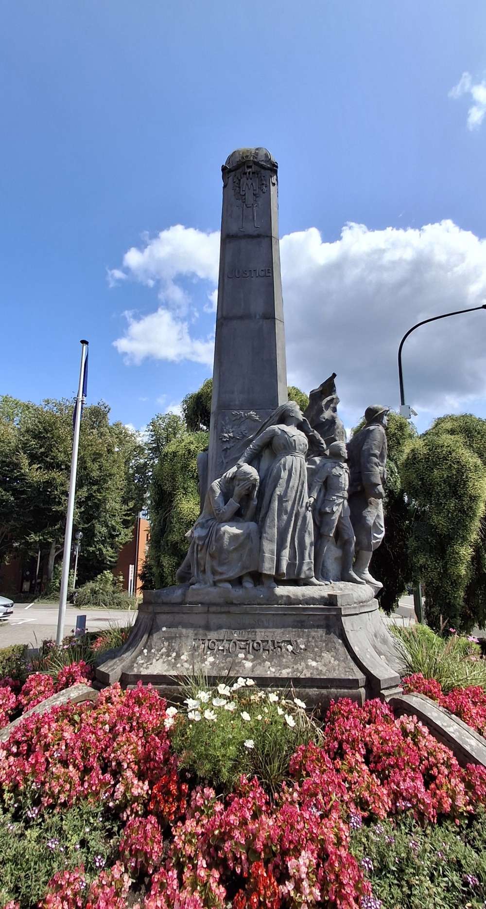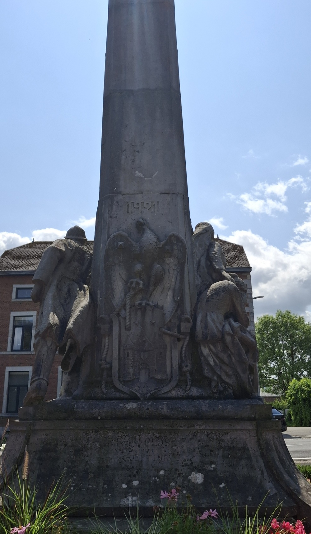 Localisation: Rue Victor Libert, devant le tribunal de Première Instance. Coordonnées GPS: +50°13'41.5", +5°20'23.9" Inscriptions Sur la face avant "À NOS MORTS GLORIEUX 1914 - 1918" Sur la face gauche "JUSTICE 1940 - 1945" Sur la face arrière "1921" Sur la face droite "LIBERTÉ 1940 - 1945" Informations complémentaires La stèle centrale est entourée de figures humaines : au premier plan et à droite, quatre soldats; à gauche deux femmes – l'une en deuil, l'autre regardant vers l'extérieur – et un garçon donnant la main au premier soldat. Au sommet de la stèle, sur les quatre faces, figurent les armoiries de Marche-en-Famenne. Statuaire: Alexis FIVET (Né à Jupille en 1882 et décédé à Liège en 1954) Architecte: Jos MOUTSCHEN Sculpteur: Firmin CLOSE Ce monument ne comporte pas de noms de victimes de guerre |
