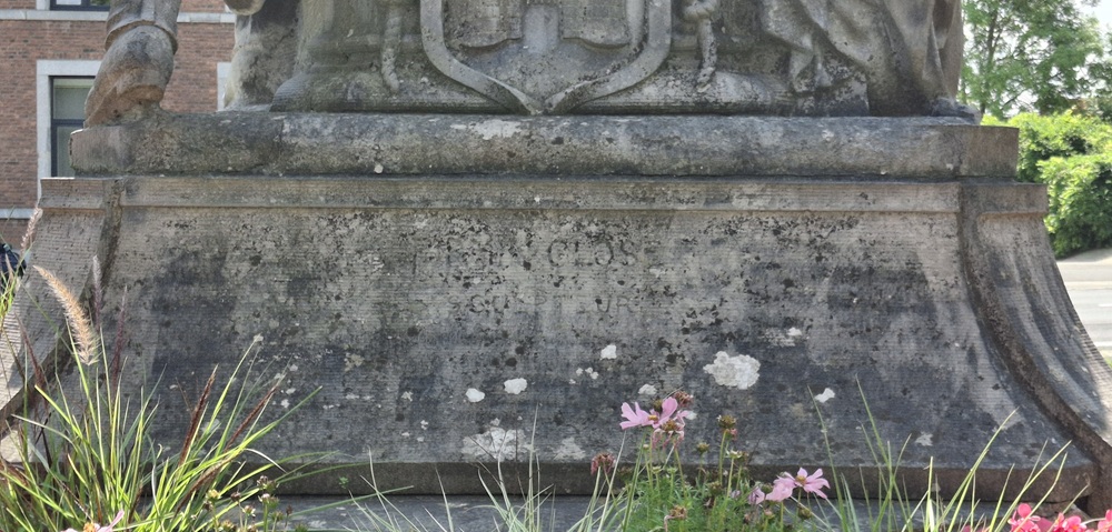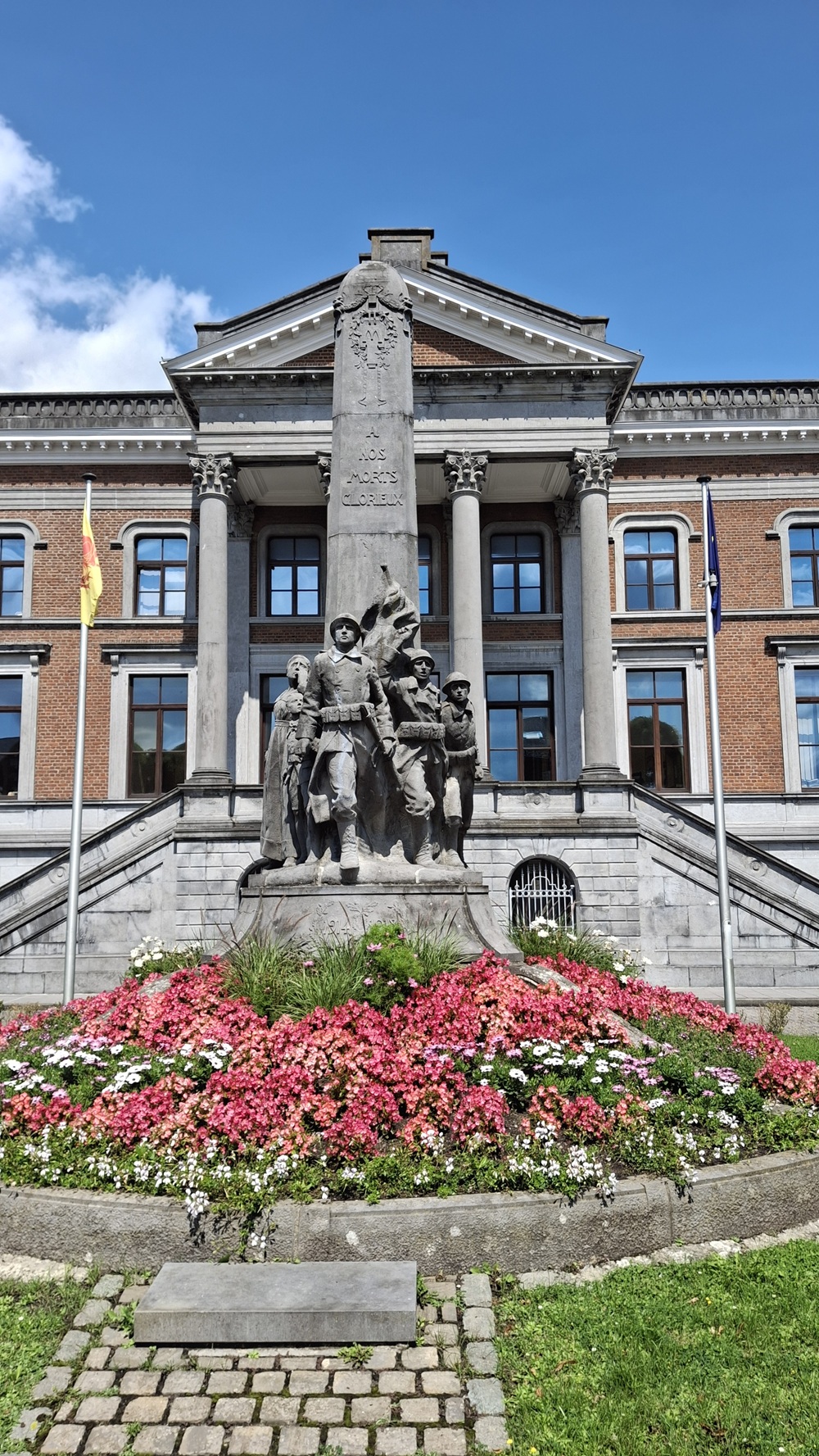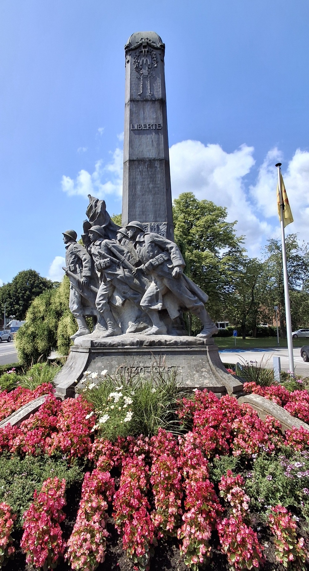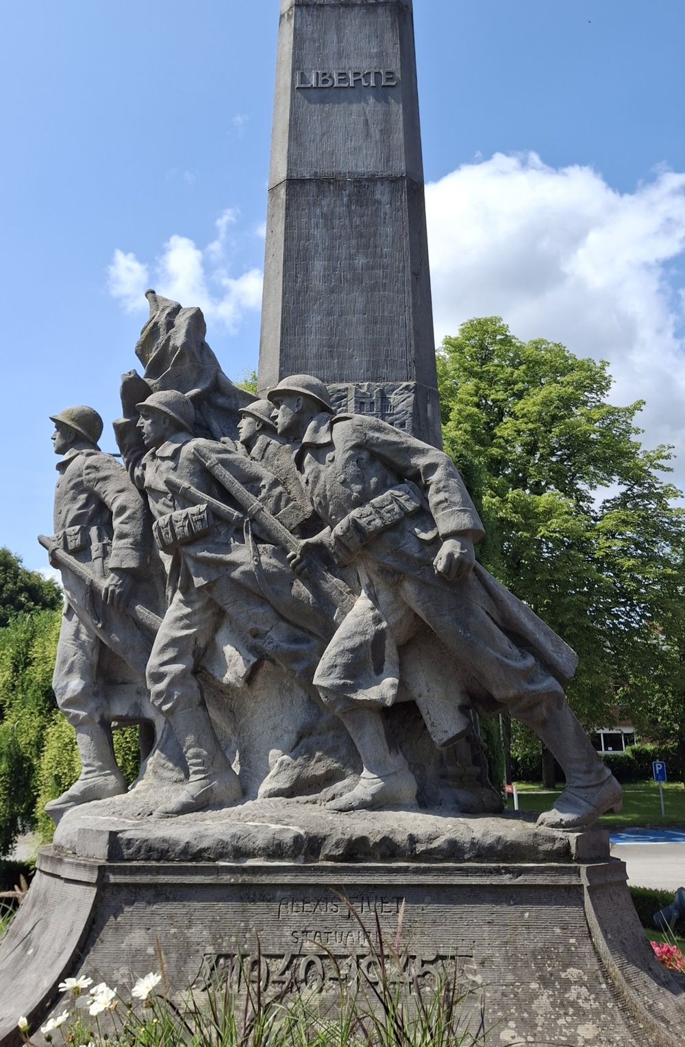 Localisation: Rue Victor Libert, devant le tribunal de Première Instance. Coordonnées GPS: +50°13'41.5", +5°20'23.9" Inscriptions Sur la face avant "À NOS MORTS GLORIEUX 1914 - 1918" Sur la face gauche "JUSTICE 1940 - 1945" Sur la face arrière "1921" Sur la face droite "LIBERTÉ 1940 - 1945" Informations complémentaires La stèle centrale est entourée de figures humaines : au premier plan et à droite, quatre soldats; à gauche deux femmes – l'une en deuil, l'autre regardant vers l'extérieur – et un garçon donnant la main au premier soldat. Au sommet de la stèle, sur les quatre faces, figurent les armoiries de Marche-en-Famenne. Statuaire: Alexis FIVET (Né à Jupille en 1882 et décédé à Liège en 1954) Architecte: Jos MOUTSCHEN Sculpteur: Firmin CLOSE Ce monument ne comporte pas de noms de victimes de guerre |