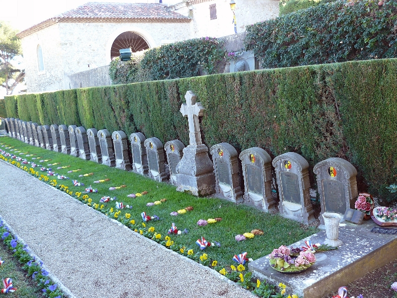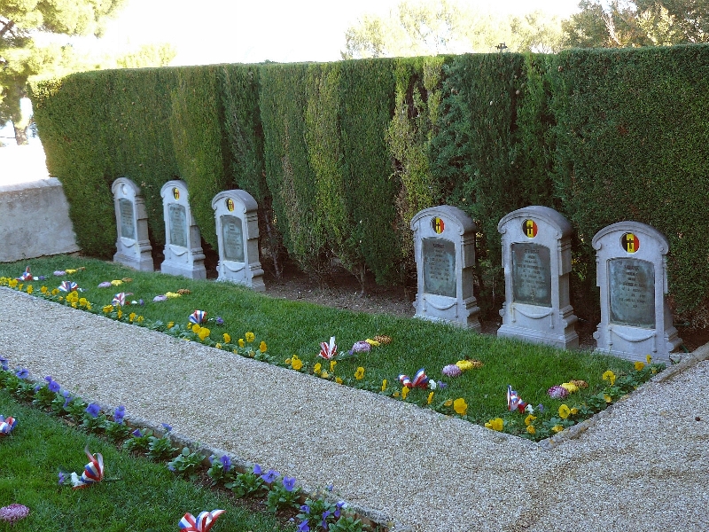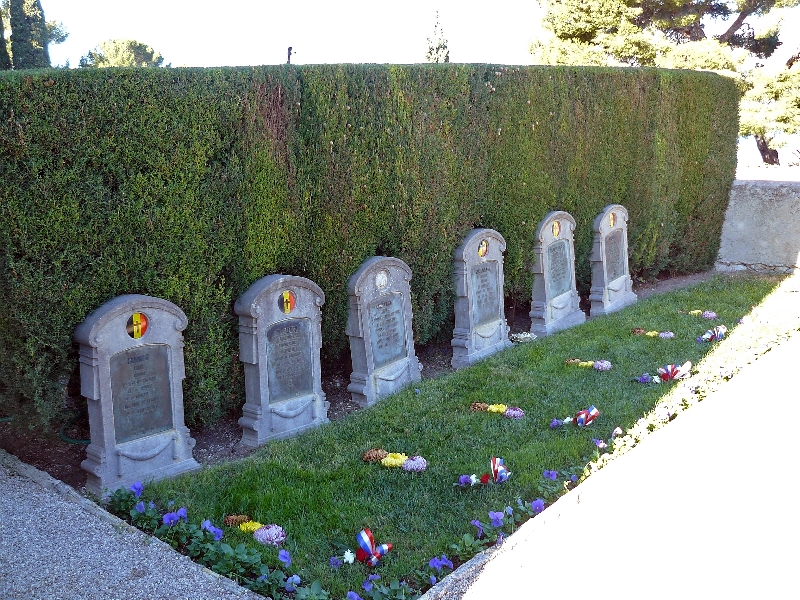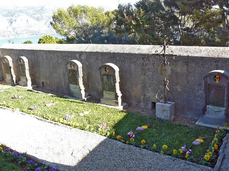 Localisation - Ligging: Pointe de Sainte-Hospice, juste à côté du cimetière communal. "Pointe de Sainte-Hospice" naast de gemeentelijke begraafplaats. Inscriptions sur les plaques à l'entrée du cimetière - Opschriften op de platen aan de ingang van de begraafplaats "SOUVENEZ-VOUS ! 1914 - 1918 ICI REPOSENT 90 BELGES MORTS POUR LA PATRIE AIDEZ LE SOUVENIR BELGE À NICE À ENTRETENIR DIGNEMENT LEURS TOMBES DON DE MR KERKHOFS PRÉST DE LA F. N. I. SON FRANCE" "1950 CIMETIÈRE RESTAURÉ PAR MADAME WAGEMANS EN SOUVENIR DE SON MARI. LA F. N. I. RECONNAISSANTE" "SOUVENIR FRANÇAIS SON ST JEAN CAP FERRAT" "[Plaque à l'effigie du Roi ALBERT 1er] ALBERT 1er ROI - SOLDAT" On trouvera à l'adresse ci-dessous l'histoire de l'hôpital militaire belge de Saint-Jean-Cap-Ferrat: De historiek van het Belgisch militair hospitaal is te vinden op (F) : http://www.1914-1918.be/histoire_hopitaux.php Voir les noms des soldats inhumés dans ce cimetière - Zie namen van de de soldaten die op deze begraafplaats rusten |