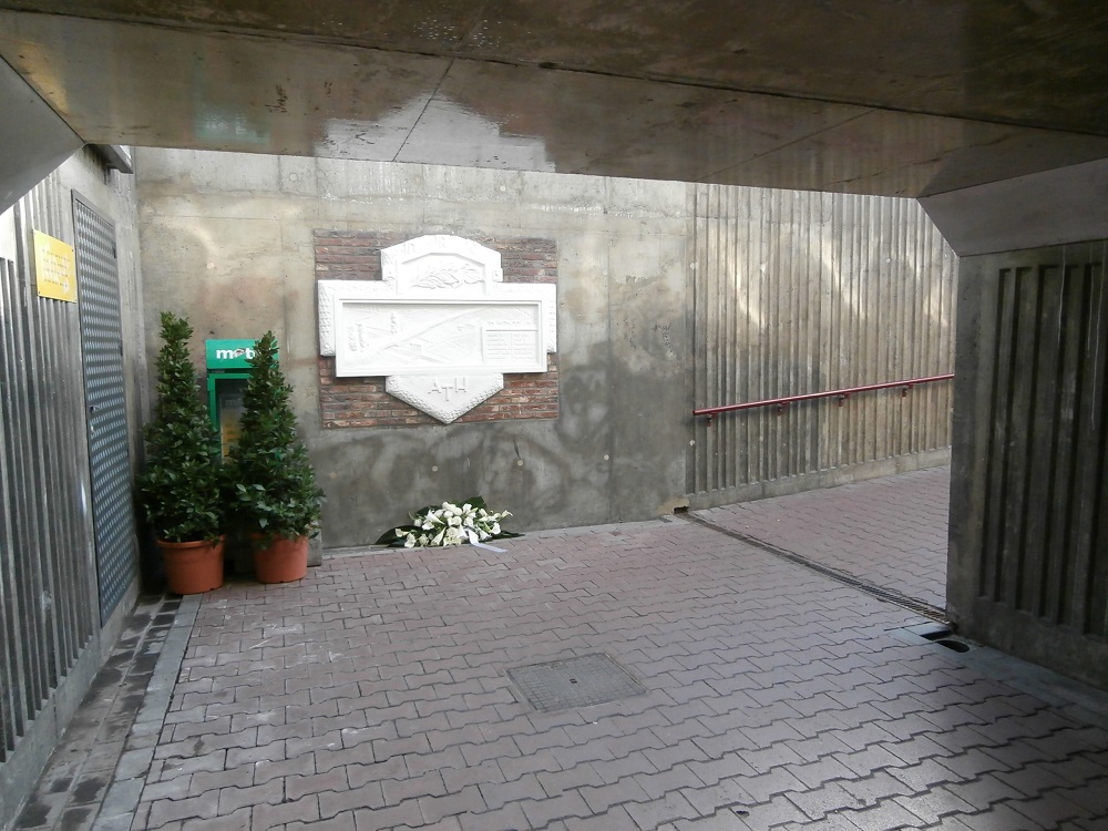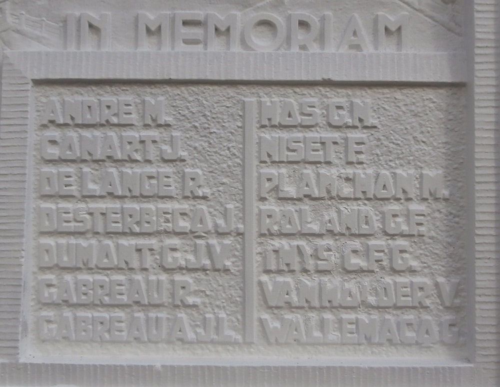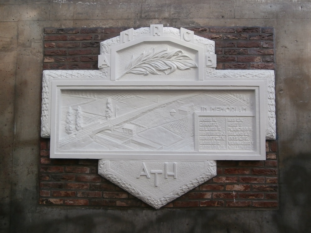 Localistaion: Gare de Ath, dans le souterrain menant vers les voies et le parking. Coordonnées GPS: +50°37'38.49", 3°46'33.74" Inscriptions "A.N.R.C.B. IN MEMORIAM [Quatorze noms, classés par ordre alphabétique sur deux colonnes] ATH" Voir les noms mentionnés sur ce monument