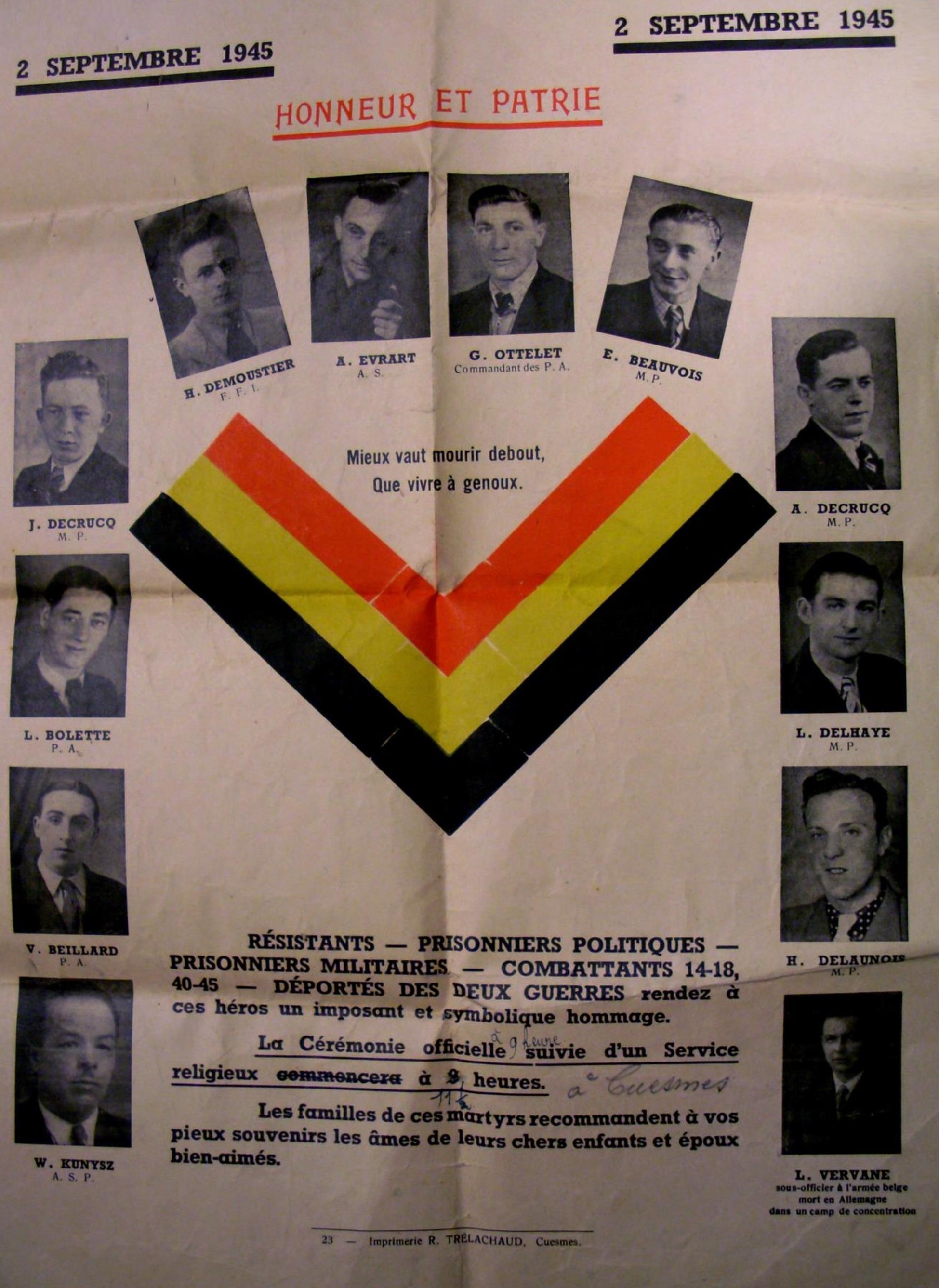 CÉRÉMONIE OFFICIELLE À 9 HEURES SUIVIE D'UN SERVICE
