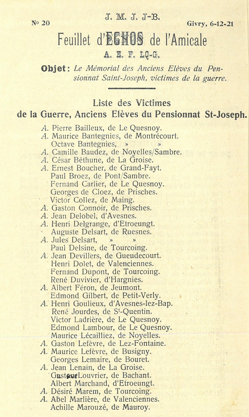 monument aux morts du Pensionnat Saint-Joseph n'existent