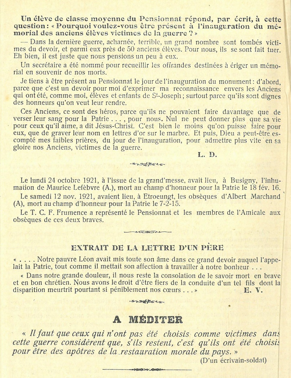 anciens élèves daté su 6 décembre 1921 (voir ci-dessous).