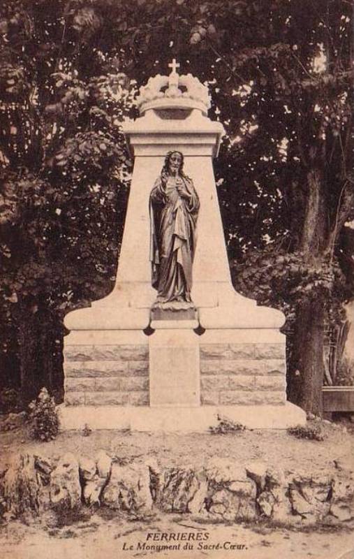 Localisation de ce monument: Rue Au Clocher. Coordonnées GPS: +50°23'56.51", +5°36'12.32". Inscription figurant sur le monument "AU SACRÉ-CŒUR DE JÉSUS LA PAROISSE DE FERRIÈRES RECONNAISSANTE 1914 - 1918" Informations complémentaires: Il s'agit d'une statue du Sacré-Cœur placée devant une pyramide tronquée et portant une grande couronne en pierre. Architecte: GOVAERTS de Bruxelles. Matériaux: petit granit, moellons de grès et de ciment. Hauteur: 3 m. Inaugurée en 1919. L’histoire de ce monument nous est livrée par le site LeVisiteur.be ( levisiteur.be) « En 1918, à l’Armistice, le bourgmestre M. Ernest ORBAN de Xivry, et son épouse Mme Maria MASSANGE, suggèrent à M. le Doyen GYR d’ériger un monument de reconnaissance au Sacré-Cœur pour la protection dont il avait couvert Ferrières pendant la guerre. En effet, la paroisse n’avait eu à endurer que les épreuves communes à tous les Belges du territoire occupé, tandis que pas bien loin on avait beaucoup souffert. Ernonheid avait eu ses habitations incendiées et un homme […] avait été pendu. Lincé avait été incendié et plusieurs de ses habitants fusillés. À Hamoir, un jeune homme avait été tué. On avait mille fois raison de remercier le Sacré-Cœur, car dès les premiers jours de la guerre la population s’était mise sous sa garde. […] ». Le bourgmestre organise la collecte des fonds, achète une statue du Sacré-Cœur, puis fait dresser des plans par un architecte bruxellois, plans qui seront approuvés par le Conseil communal. La commune n’aura à déplorer « que » la perte de neuf de ses combattants (le site internet n’en cite que cinq), qui ont leur nom gravé sur le monument communal (Source [276]) Ce monument ne comporte pas de noms |