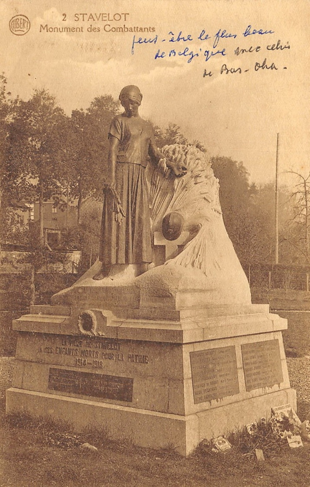 d’origine, qui portait la dédicace « LA VILLE DE STAVELOT -