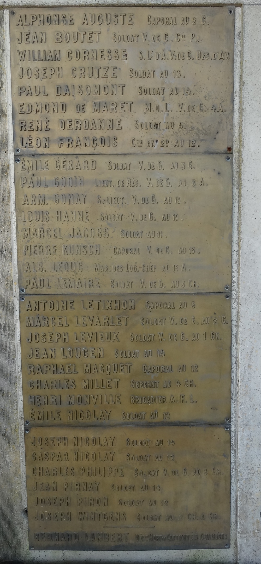 disparu. Les plaques de laiton portant les noms de 31