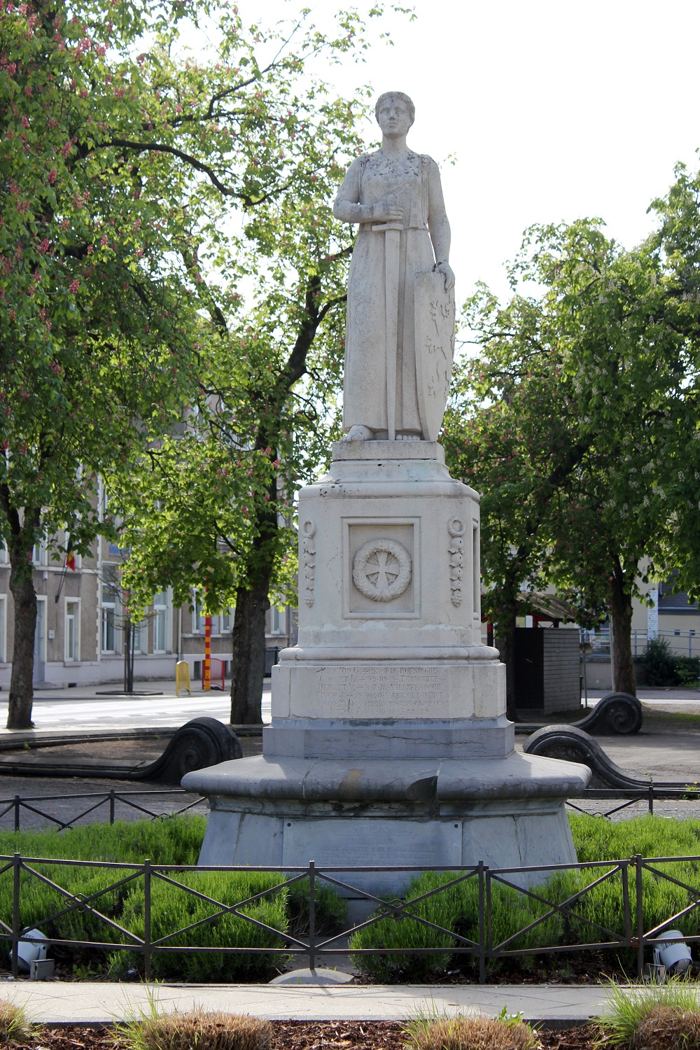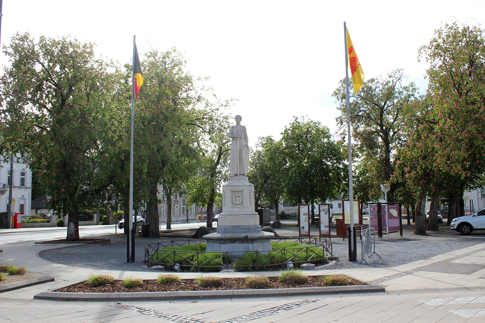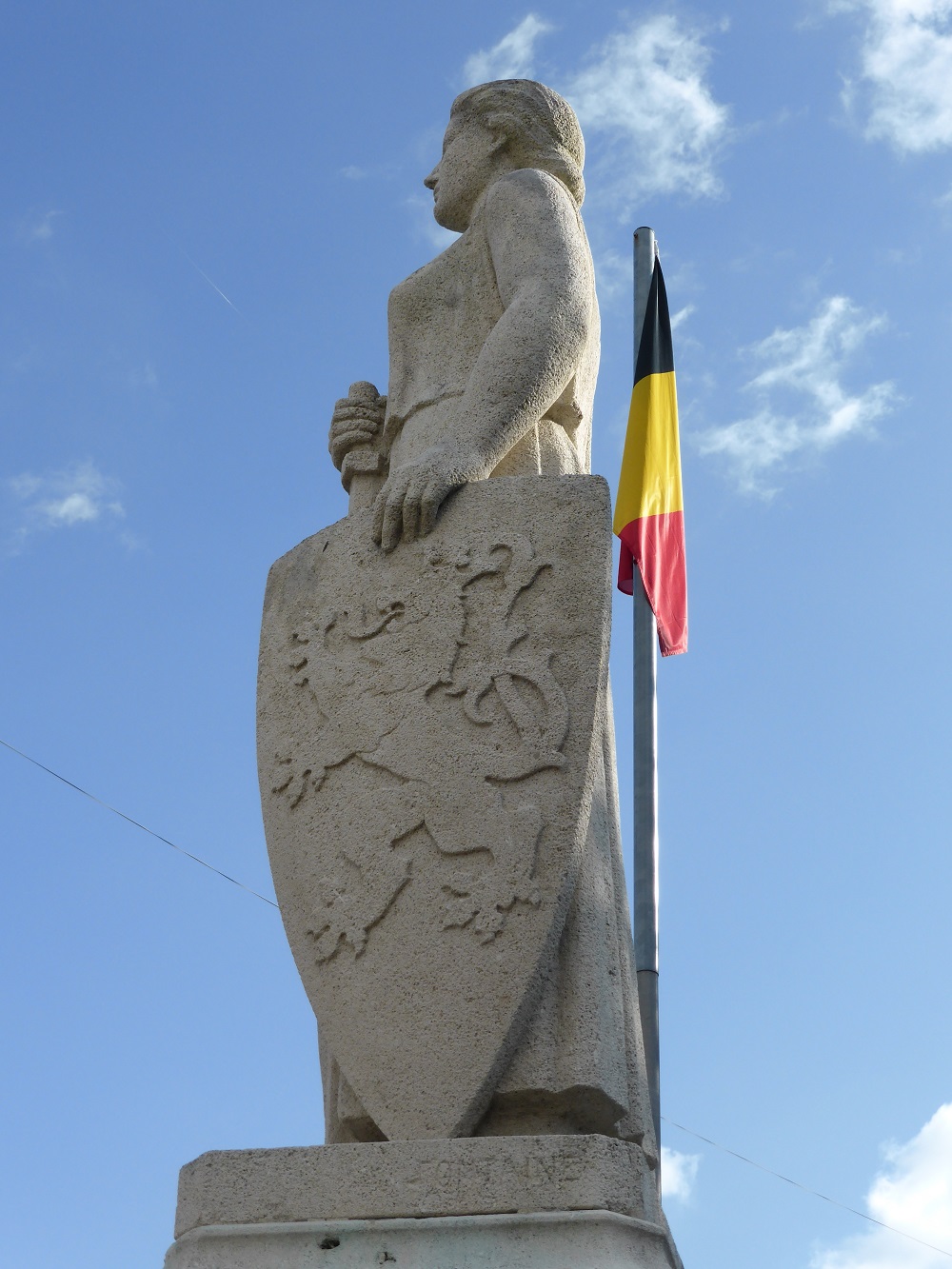 bronze, représentait un soldat belge brandissant le drapeau