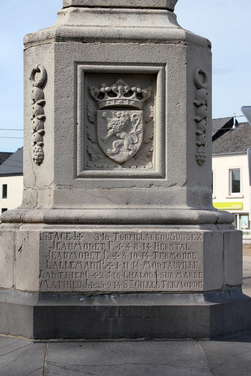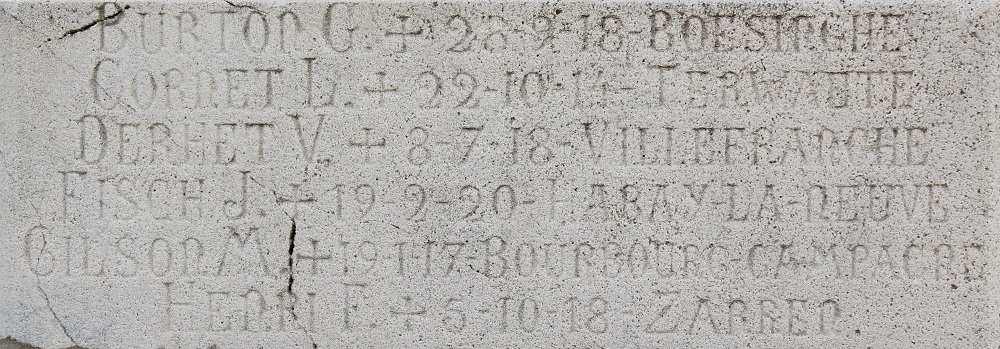 la partie supérieure et des noms de soldats ou de déportés