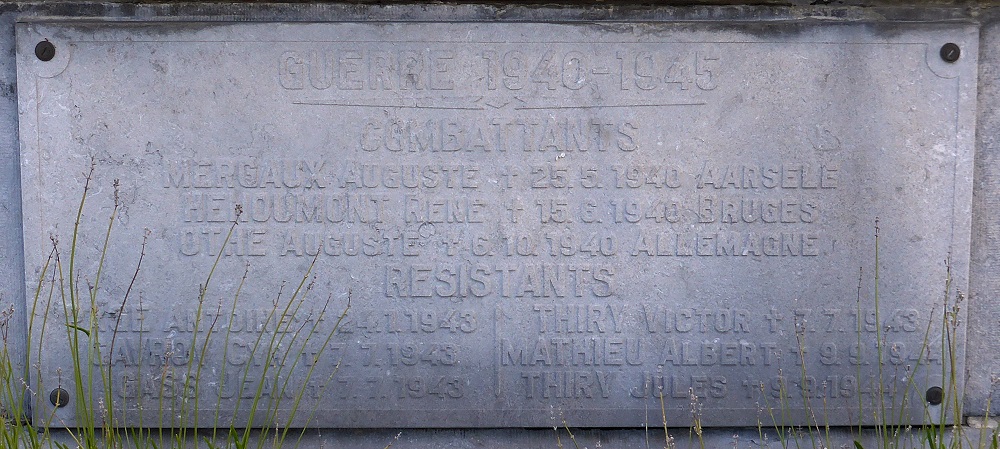 une plaque en pierre bleue, en hommage aux combattants et