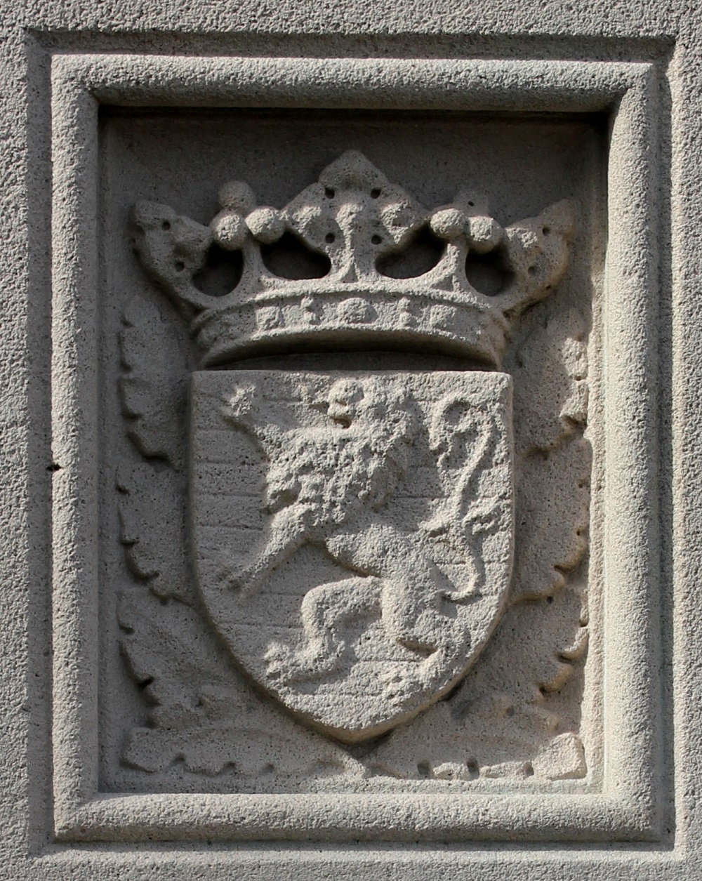 représente le blason de la Belgique, entouré de feuilles de