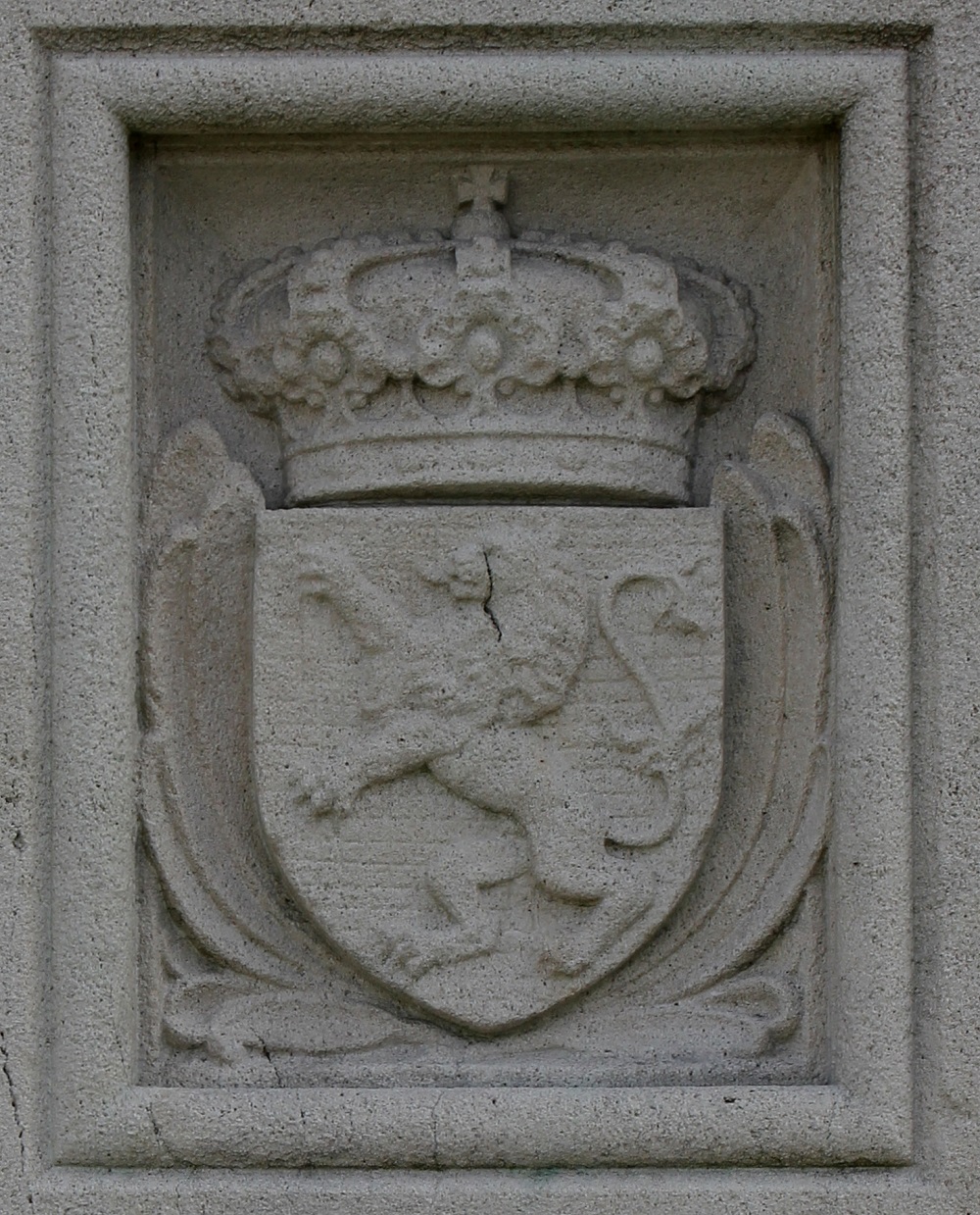 Les deux faces latérales présentent des blasons surmontés