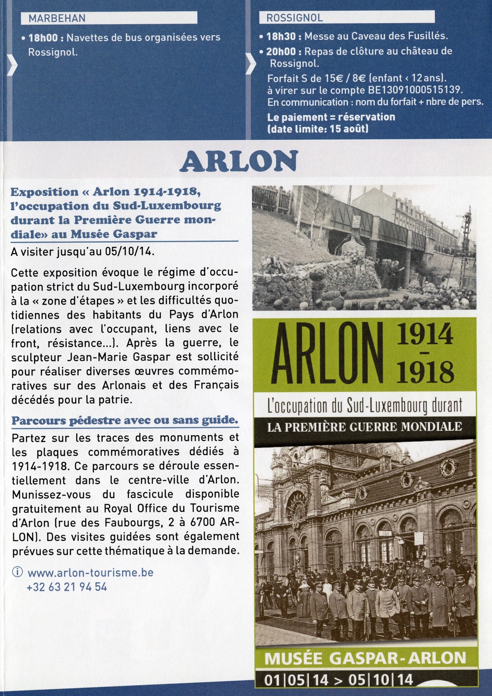 cérémonies des 18 et 18 juillet à Arlon et à Rossignol.