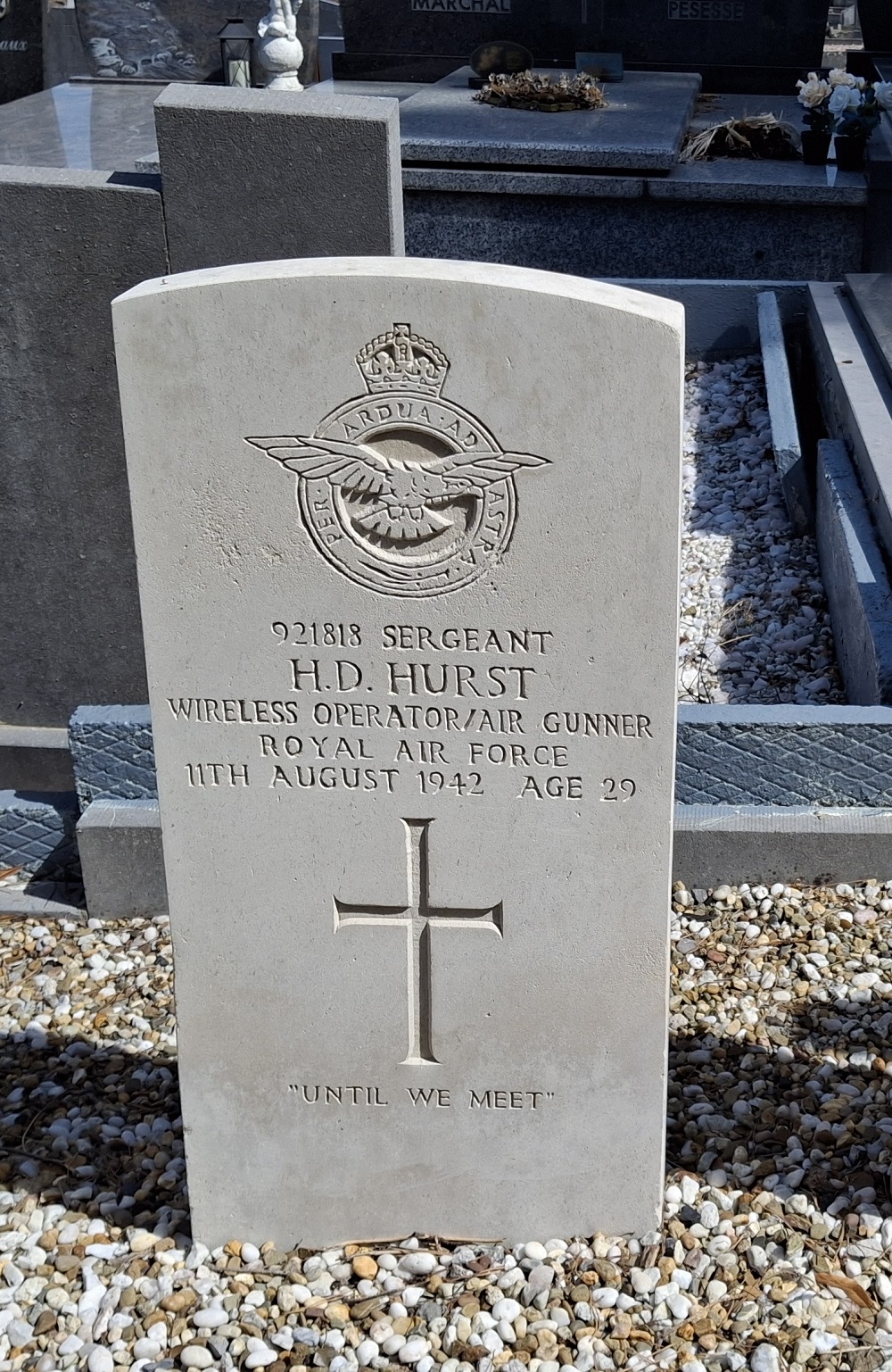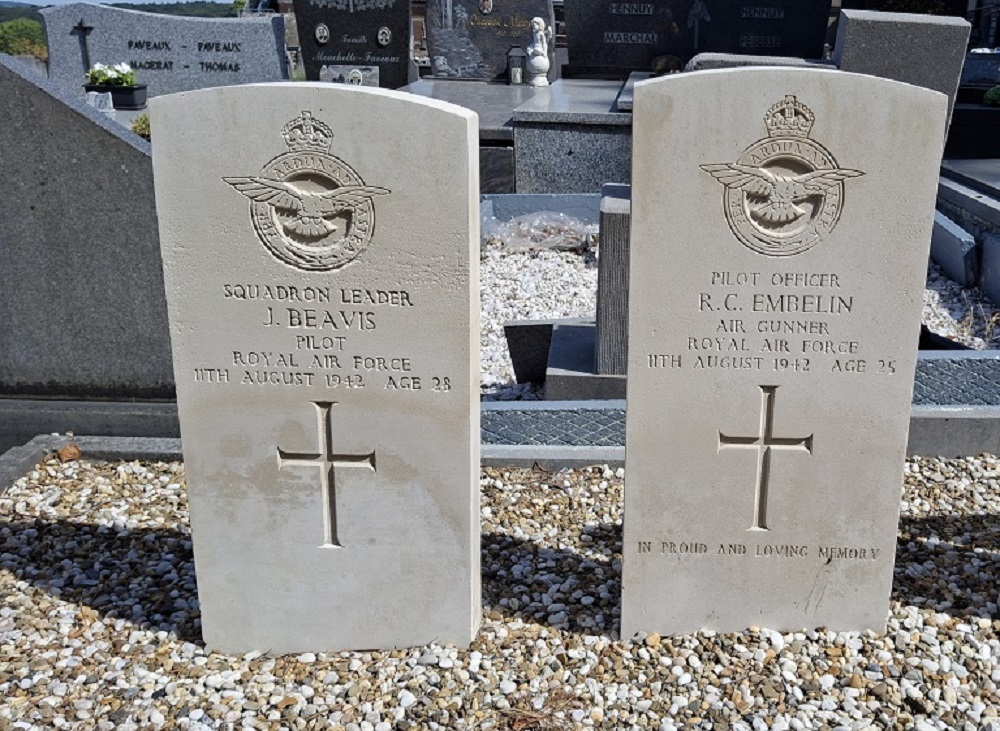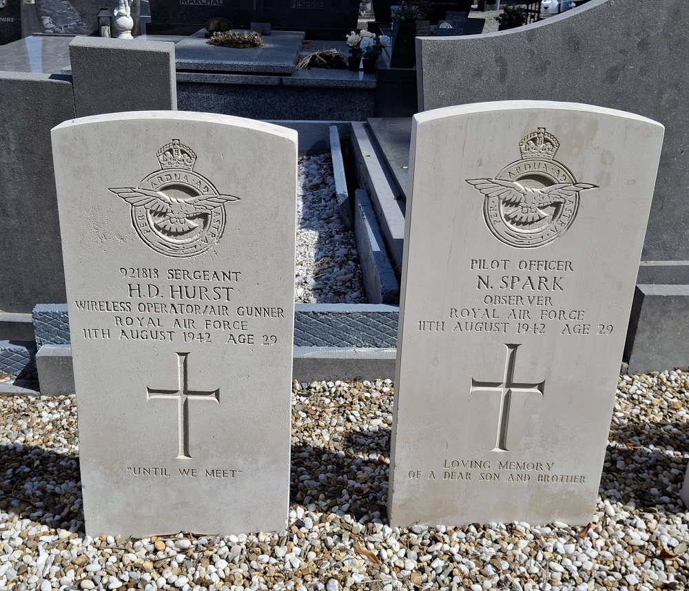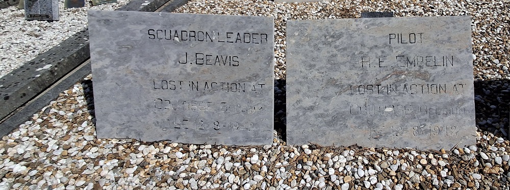 Localisation: Rue de la Montagne, dans le cimetière à l'arrière de l'église Saint-Hubert. Coordonnées GPS: +50°27'49.0", +5°07'02.4" Informations complémentaires L'avion, un Vickers Wellington Mk III, a décollé à 22 h 41 de la base d'Alconbury, Cambridgeshire, GB, pour une opération à destination de Mayence, en Allemagne. À l'aller, l'avion fut abattu par l'équipage de chasse de nuit composé de l'Oberfeldwebel Reinhard Kollak et du sous-officier Hans Hermann du 7./NJG 4, pilotant un Bf 110 3C+AR qui avait décollé de l'aérodrome de Juvincourt, en France (Source: Aviation Safety Network) Plus d'informations concernant ces victimes |