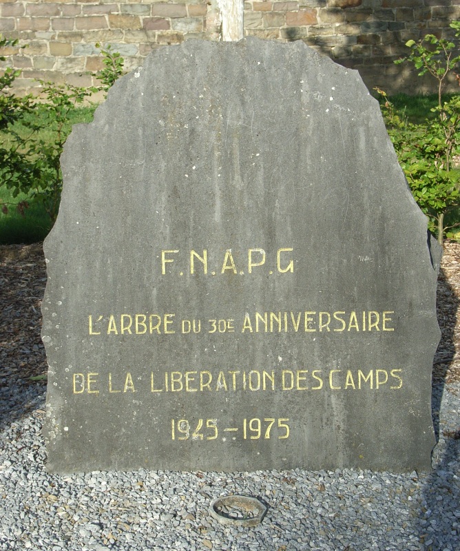 Localisation de cette stèle: Rue Petite Modave, à côté de l'entrée du cimetière communal. Coordonnées GPS: +50°26'20.57", +5°18'02.80" Inscriptions figurant sur la stèle: "F.N.A.P.G. L'ARBRE DU 30E ANNIVERSAIRE DE LA LIBÉRATION DES CAMPS 1945 - 1975" Ce monument ne comporte pas de noms. |