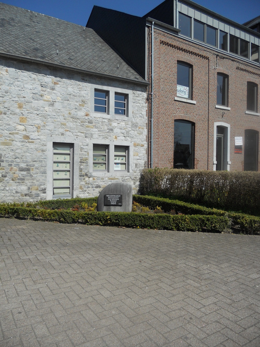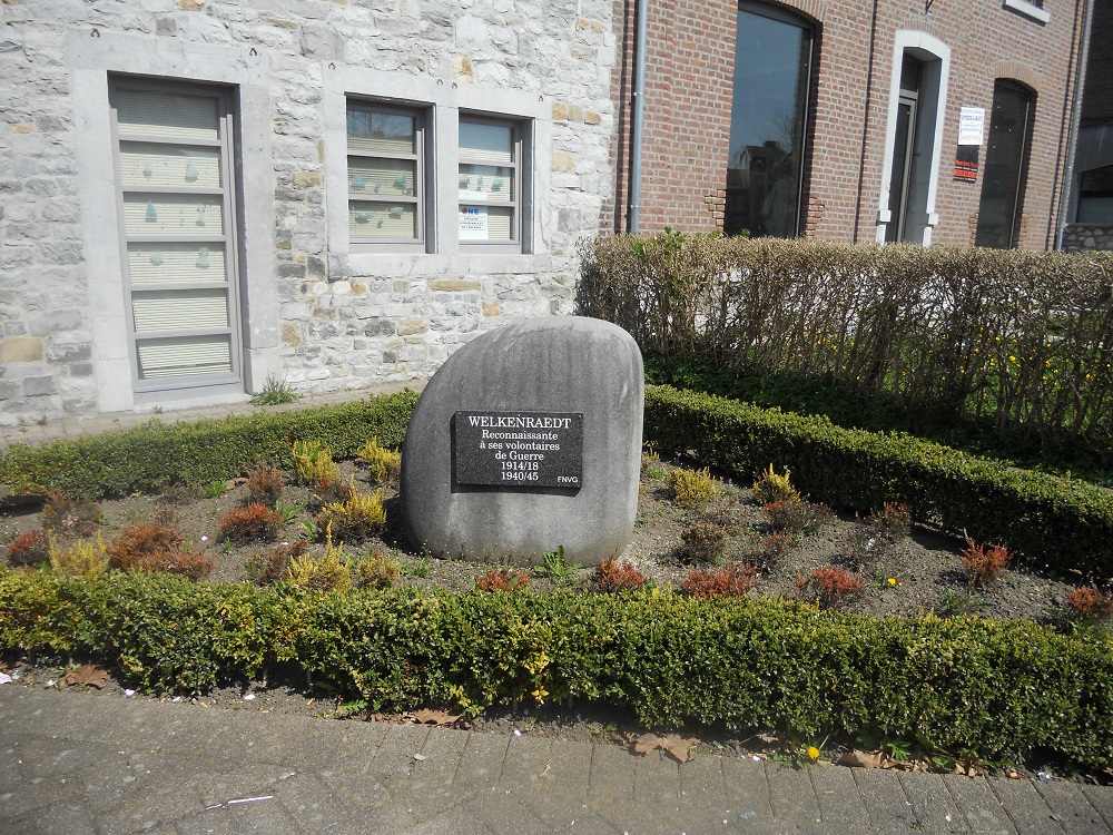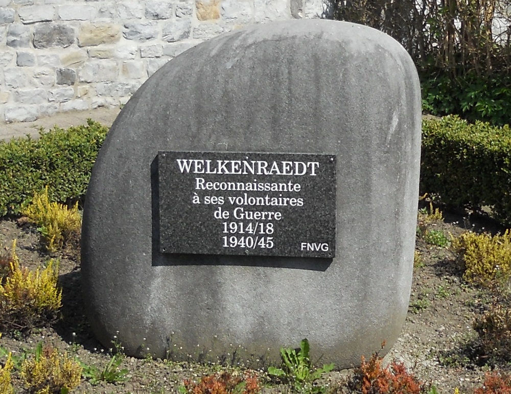 Localisation: À l'angle de la place des Combattants et de la rue Gérard Delvoye. Coordonnées GPS: +50°39'39.75", +5°58'20.30" Inscriptions "WELKENRAEDT RECONNAISSANTE À SES VOLONTAIRES DE GUERRE 1914/18 1940/45 FNVG" Ce monument ne comporte pas de noms |