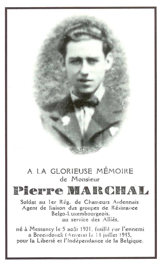 Plus d'infos/Meer info: Domicilié à Sesselich, rue des Tanneries, 6. Date d'arrestation: 16 février 1944. Exécuté pour avoir tué des sentinelles allemandes qui surveillaient un bombardier B17 qui s'était écrasé. Pendu à Breendonk et inhumé au Tir National à Schaerbeek - Schaarbeek, BR, BE, enclos des fusillés, tombe n° 182, rangée X. Dernière sépulture: Arlon, LU, BE, cimetière communal, pelouse d'honneur des martyrs (Sources [1], [18], [35] et [137])
