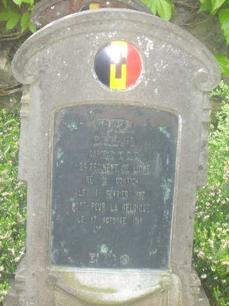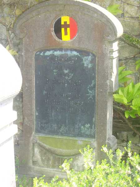 Plus d'infos/Meer info: Overlijdensdatum: 24 juli 1915. Oorspronkelijke begraafplaats: Caen, Calvados, FR, Cimetière Nord Est, Belgisch militair ereperk, rue d'Ouistreham (Bron [4]). Onderscheidingen: Orde van Leopold II; Oorlogskruis. In 2008, rustte op het Belgische militaire ereperk op de gemeentelijke begraafplaats Nord-Est, Caen, Calvados, FR (zie foto). Foto: Gilles SAUCIER (Flers, FR)