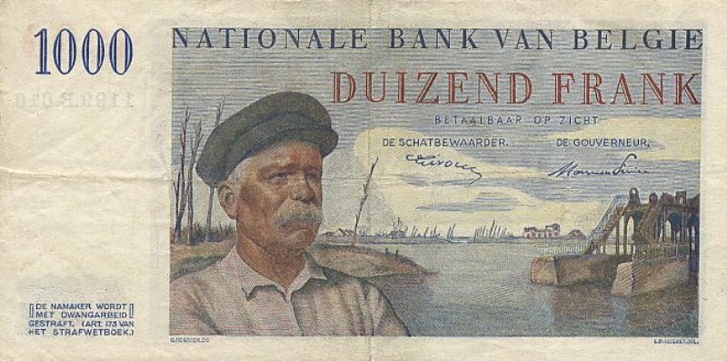 het biljet van 1000 frank staat sluiswachter Hendrik GEERAERT