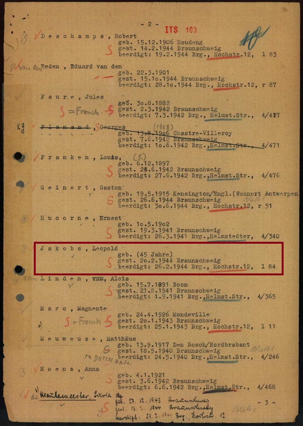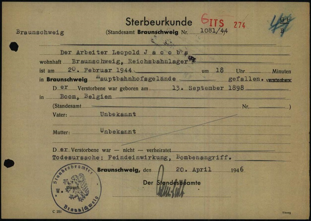 Overlijdensakte te Braunschweig, Nedersaksen, DE (Bron [665])