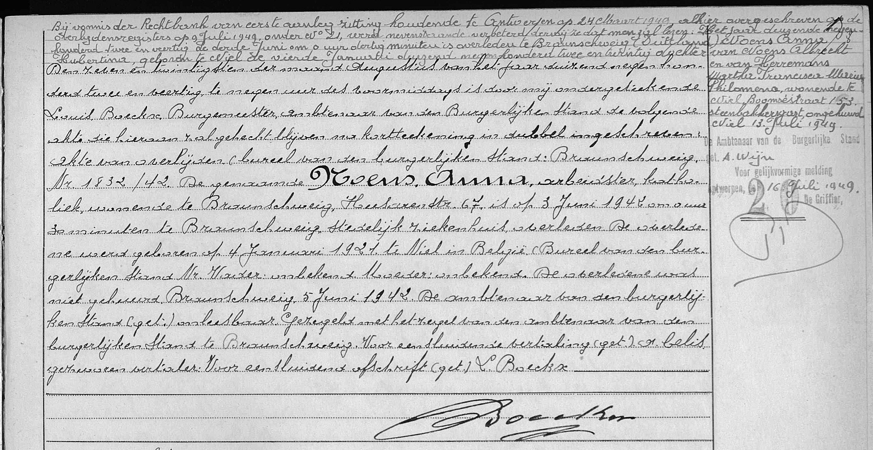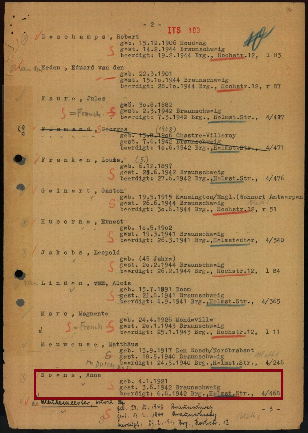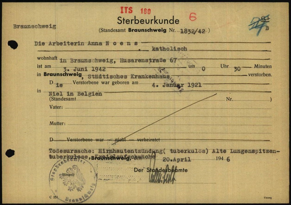 Overlijdensakte te Braunschweig, Nedersaksen, DE (Bron [665])