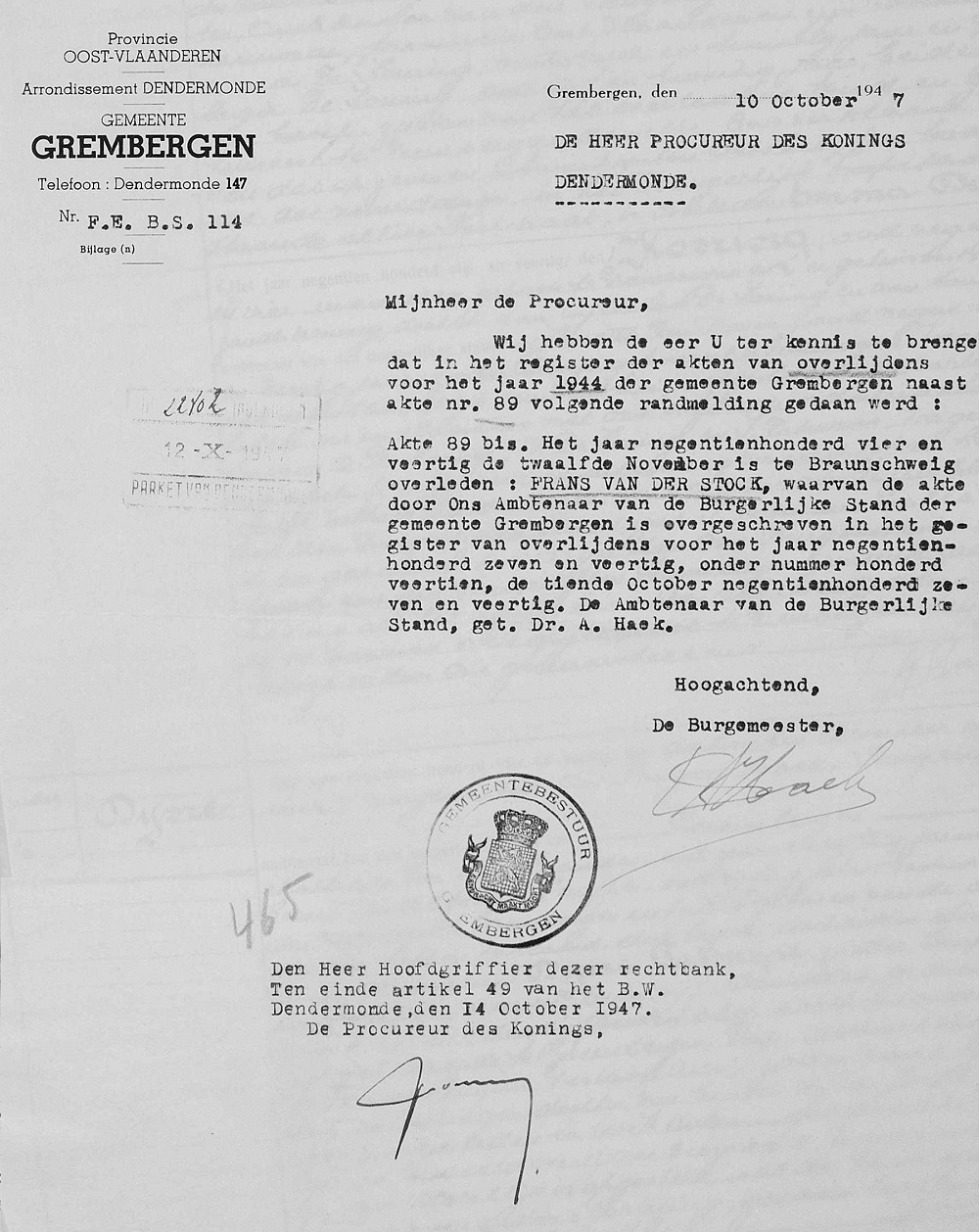 Overschrijving van overlijden in de burgerlijke stand van Grembergen,