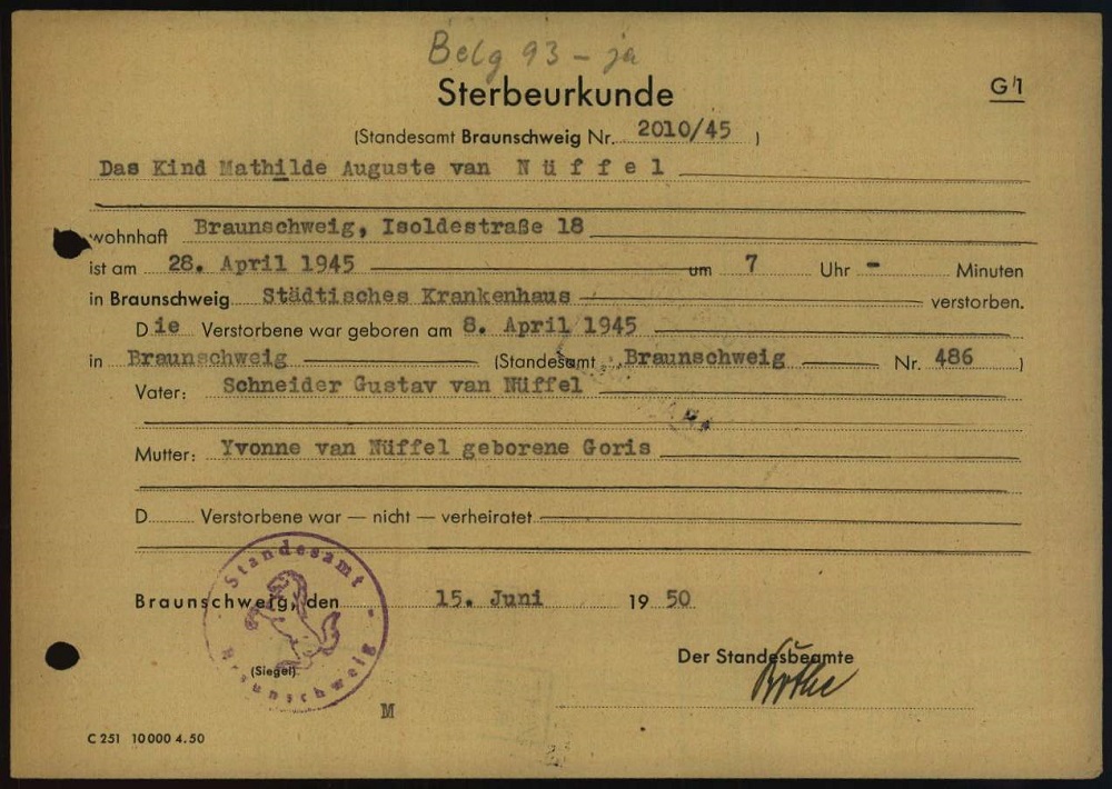 Overlijdensakte te Braunschweig, Nedersaksen, DE (Bron [665])