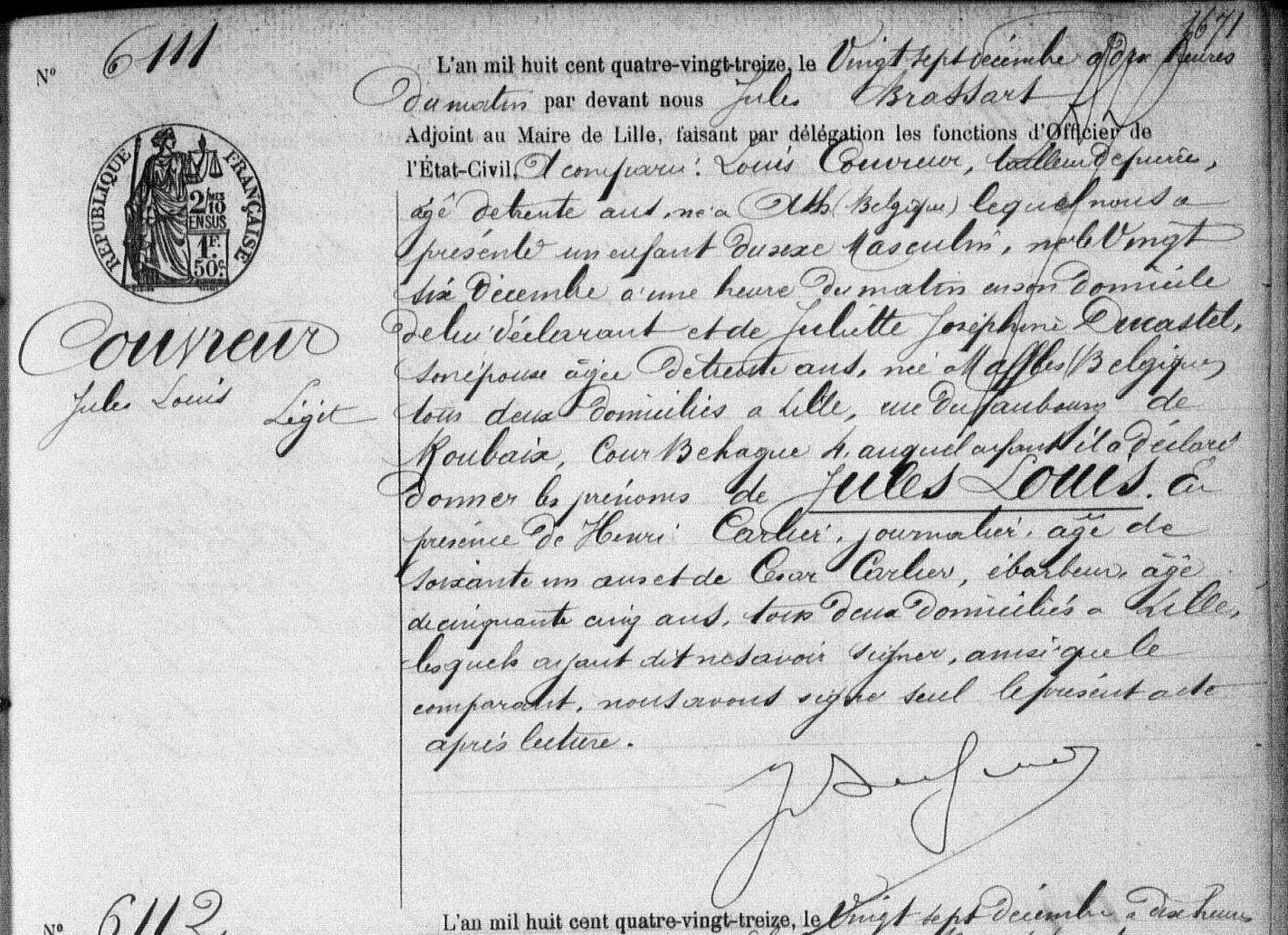 Acte de naissance (Source : Archives départementales du Nord, FR)